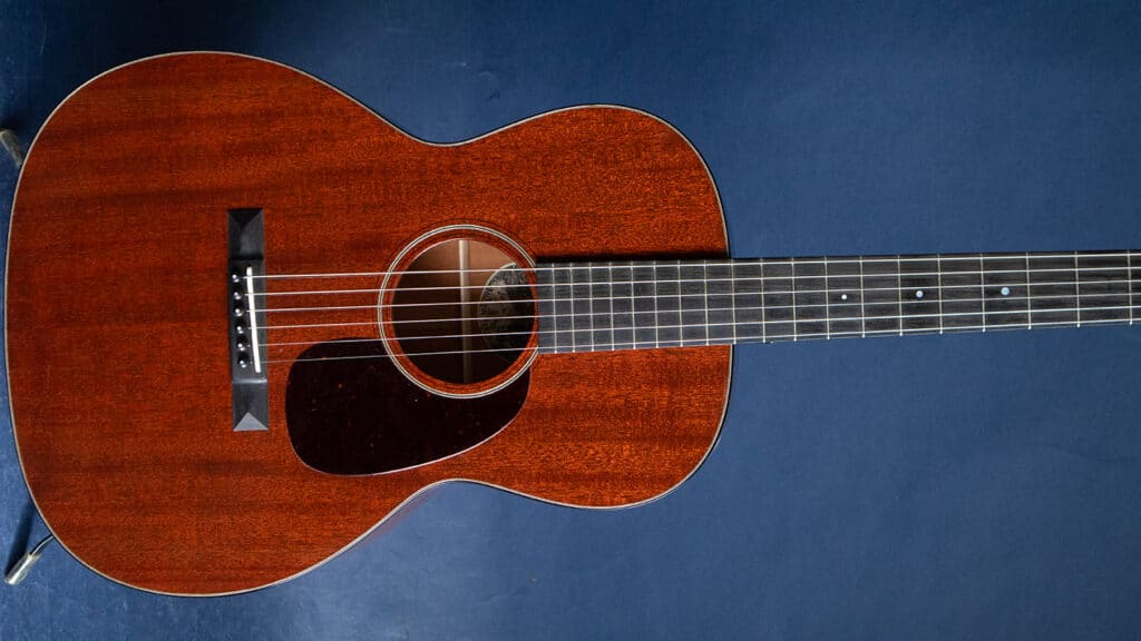 Natural, solid mahogany top back and sides, Look at that playing wear! How do you think it sounds? Yes, it’s the best tenor we can remember. This pre-war Martin ... $2,500.00