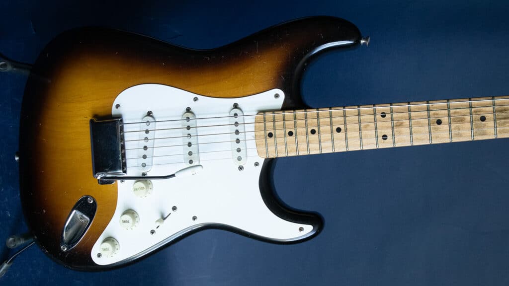 Sunburst, slab board, feather light at 8 pounds. All stock, neck date June ’61, original logo, pickguard and covers. Made before Fender’s boom years back when the Beatles were still in ... $16,000.00