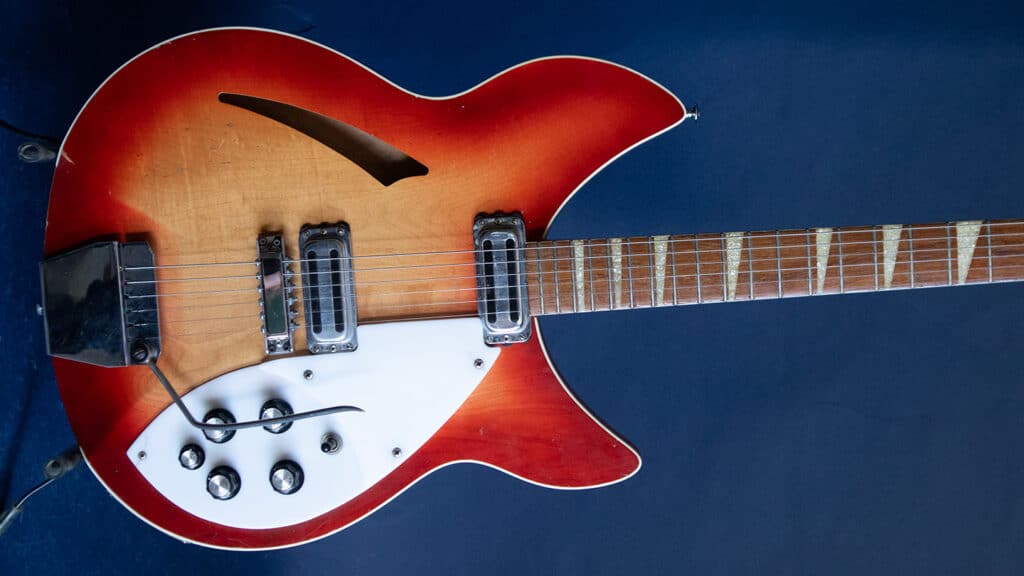 Blonde, in a very rare top of the line finish with gold hardware. These were $335 in 1960, as much as a Gibson ES-330. This has a laminated flame maple top and ... $4,750.00