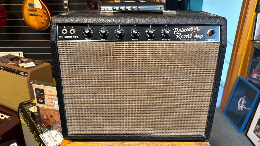 Blackface, pre-CBS “Fender Electric” non-reverb variant. AB763 on the tube chart with “ND” date code stamp indicating a manufacture date of April 1964. The 12” Jensen speaker dates to ... $3,995.00