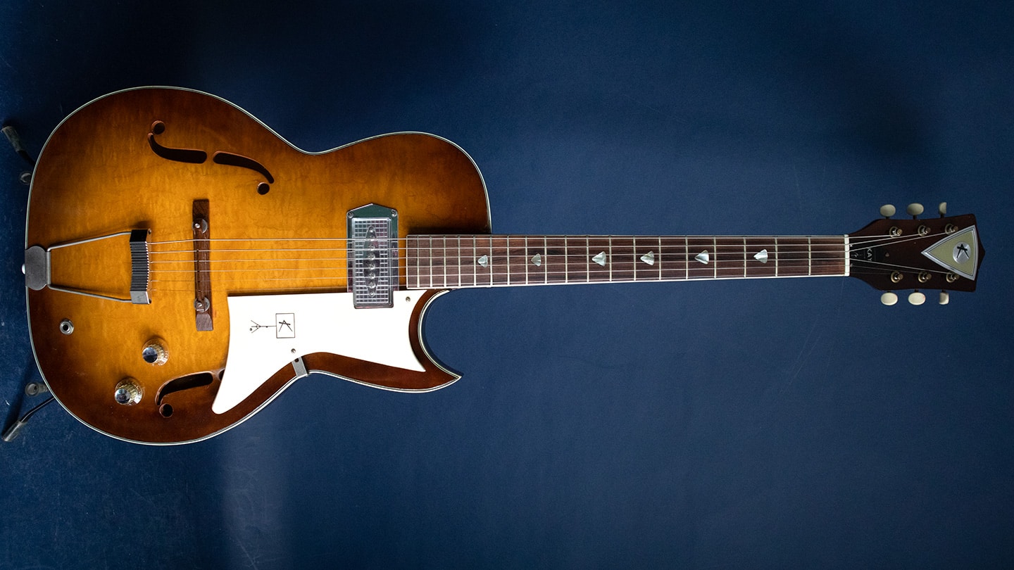 Tea Burst, Cutaway electric archtop, in excellent condition. Sounds great with the Kleenex box pickup. Has a very figured laminate maple body with gorgeous lacquer on a tea burst finish. ... $899.00