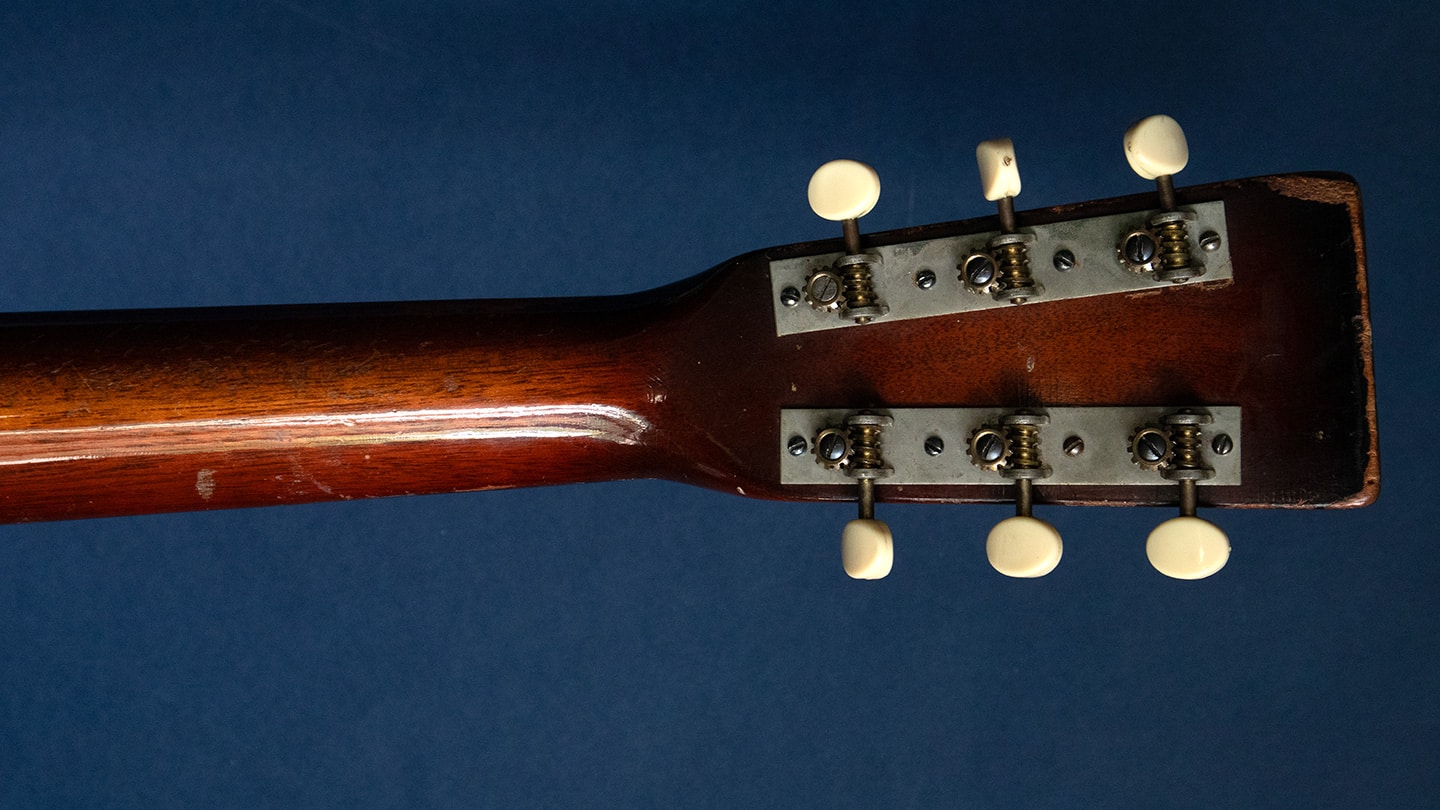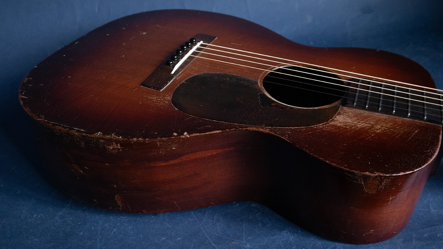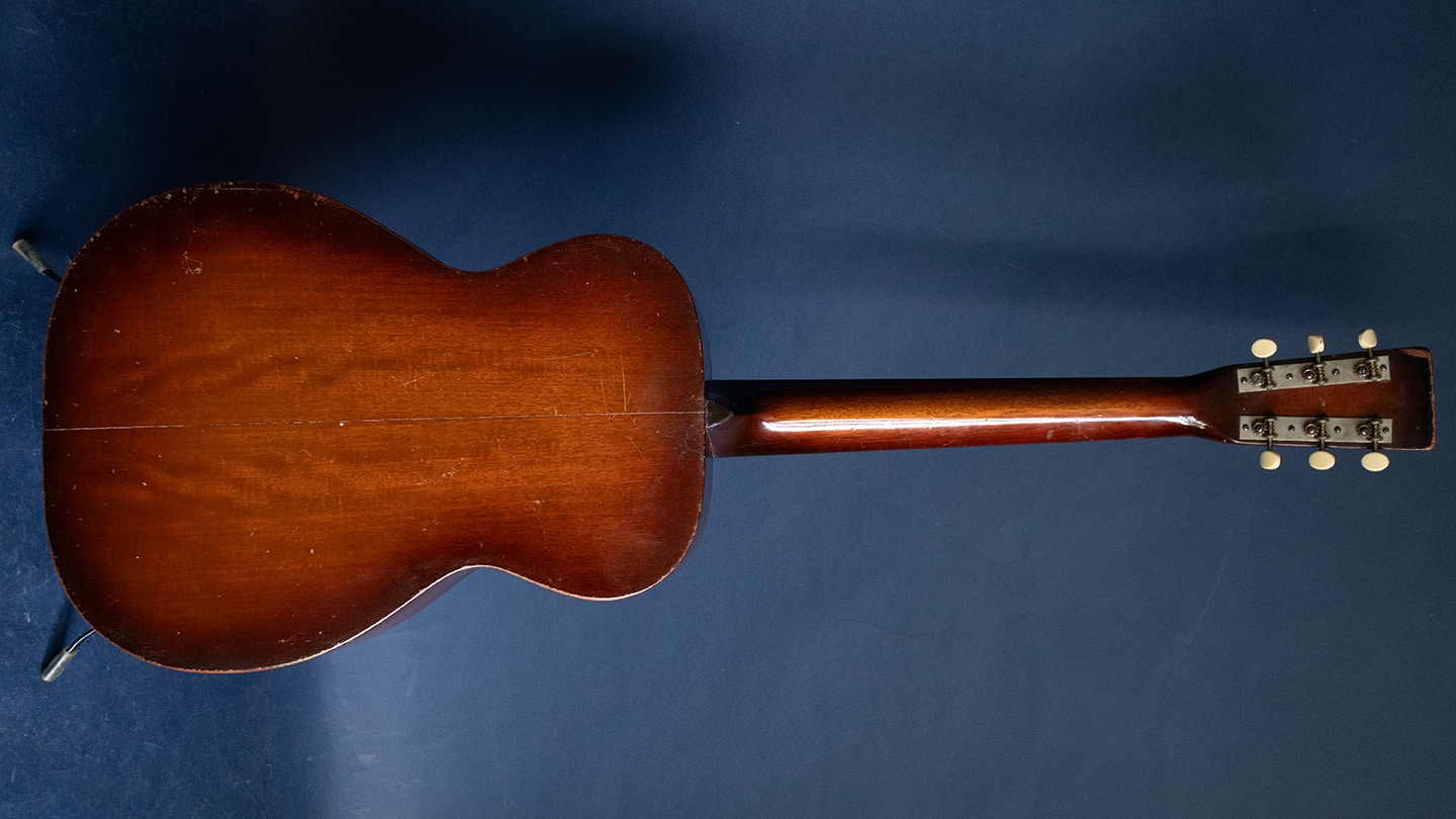 The 17 series has a long history at Martin. Even today It’s a popular model but goes back to the Civil War era, mostly with a mahogany top, sometimes with binding, and sometimes not. But 1932 is solid depression times and Martin’s golden era. In 1931 it was a 12 fret but went to 14 frets in late 1932. A pickguard was optional as was a shaded top. All sunbursts were special requests. As a ’32 with 14 frets, and full sunburst this is almost unique. It has all the golden era features like forward shifted scalloped X bracing, 1 3/4” nut width and bar frets. The tone is like thunder, it crackles and the bass blooms. It’s a wonder for its size. It will put an instant smile on your face.