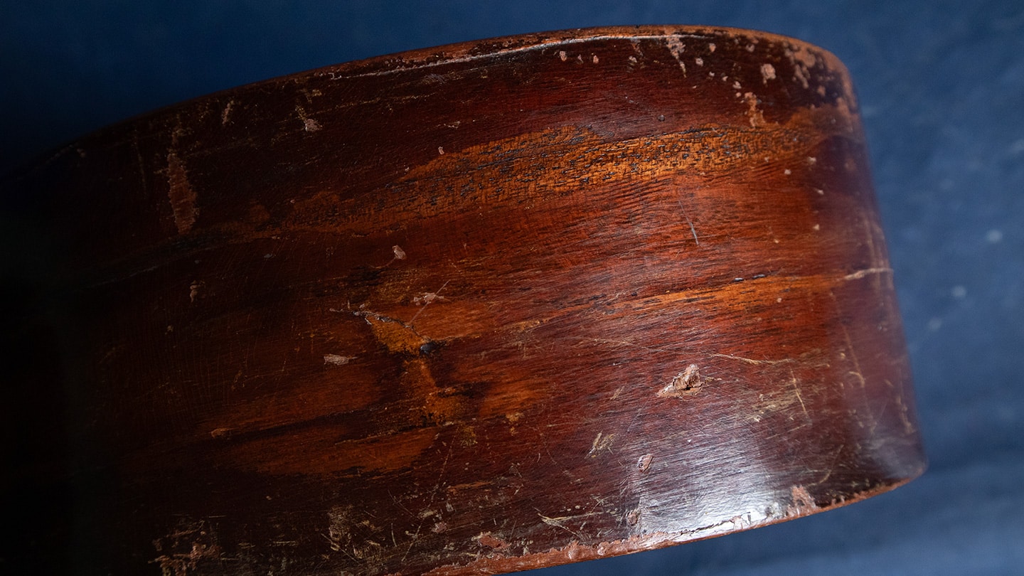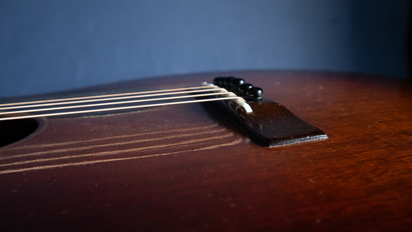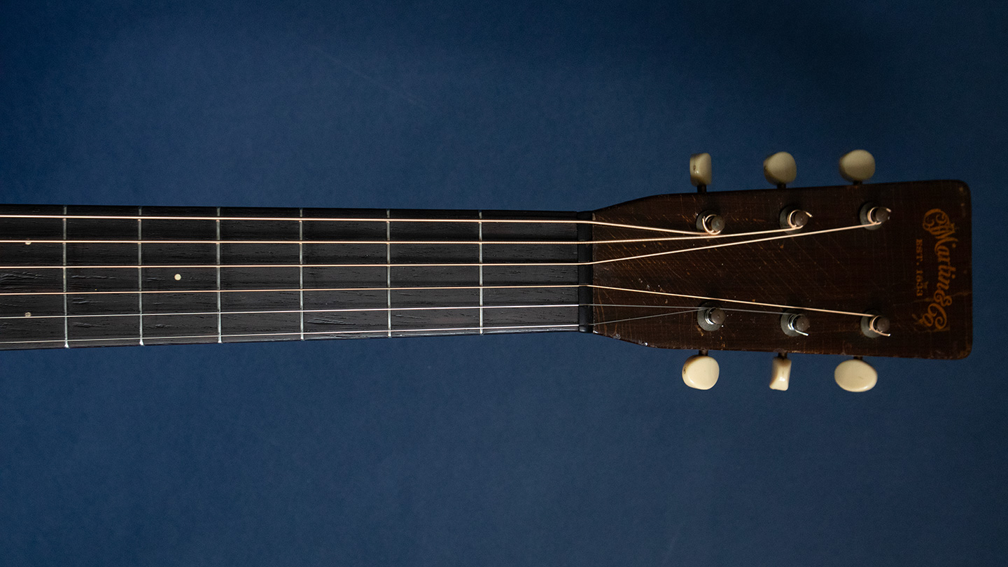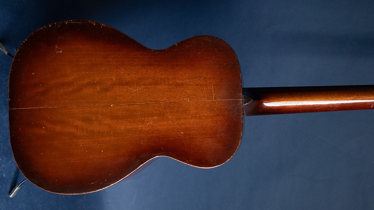 The 17 series has a long history at Martin. Even today It’s a popular model but goes back to the Civil War era, mostly with a mahogany top, sometimes with binding, and sometimes not. But 1932 is solid depression times and Martin’s golden era. In 1931 it was a 12 fret but went to 14 frets in late 1932. A pickguard was optional as was a shaded top. All sunbursts were special requests. As a ’32 with 14 frets, and full sunburst this is almost unique. It has all the golden era features like forward shifted scalloped X bracing, 1 3/4” nut width and bar frets. The tone is like thunder, it crackles and the bass blooms. It’s a wonder for its size. It will put an instant smile on your face.
