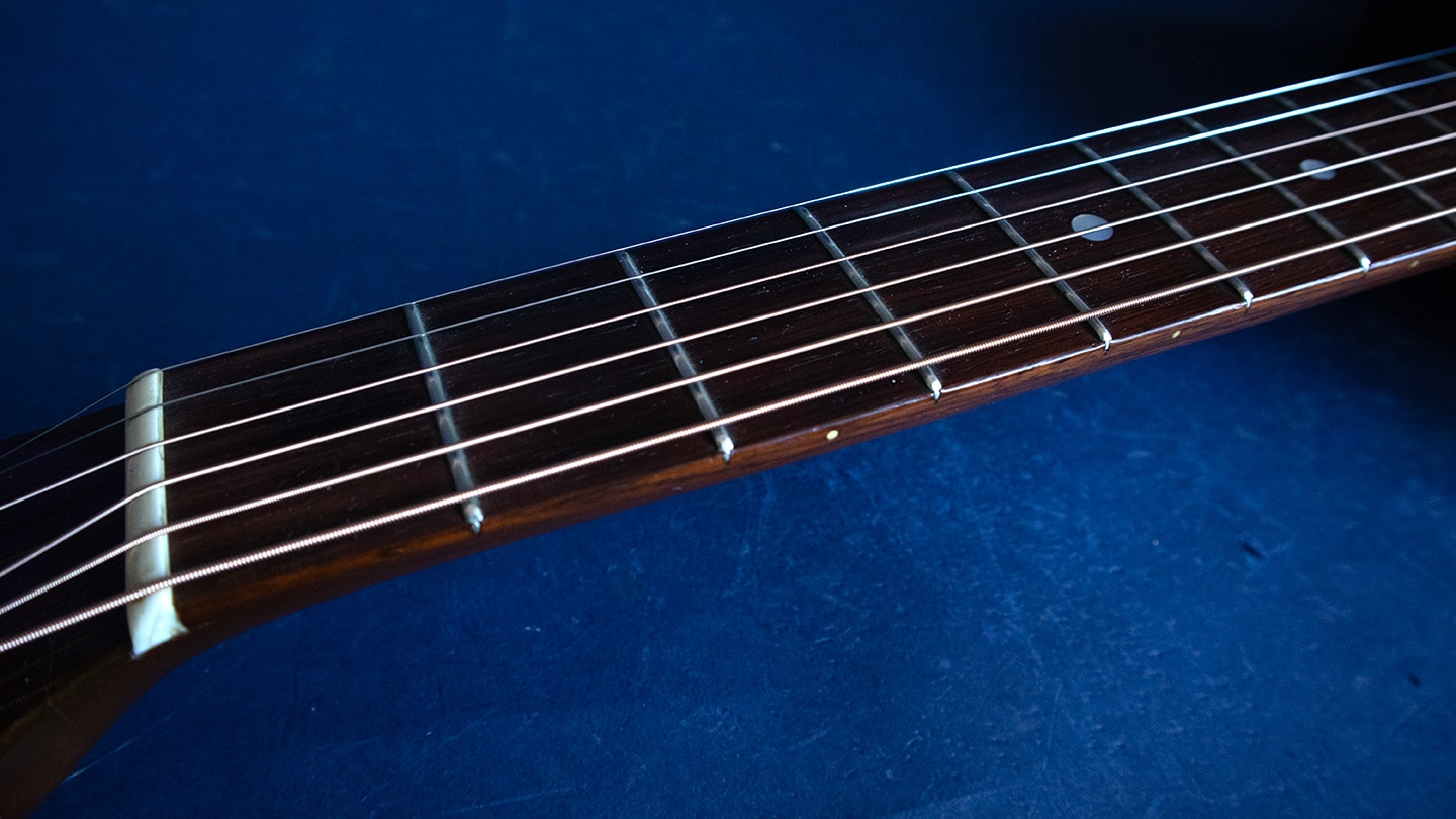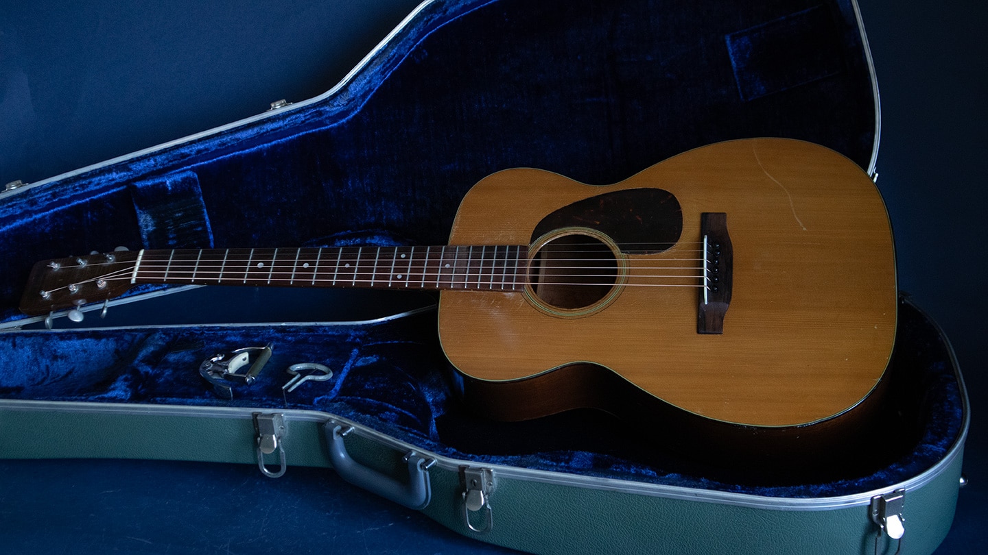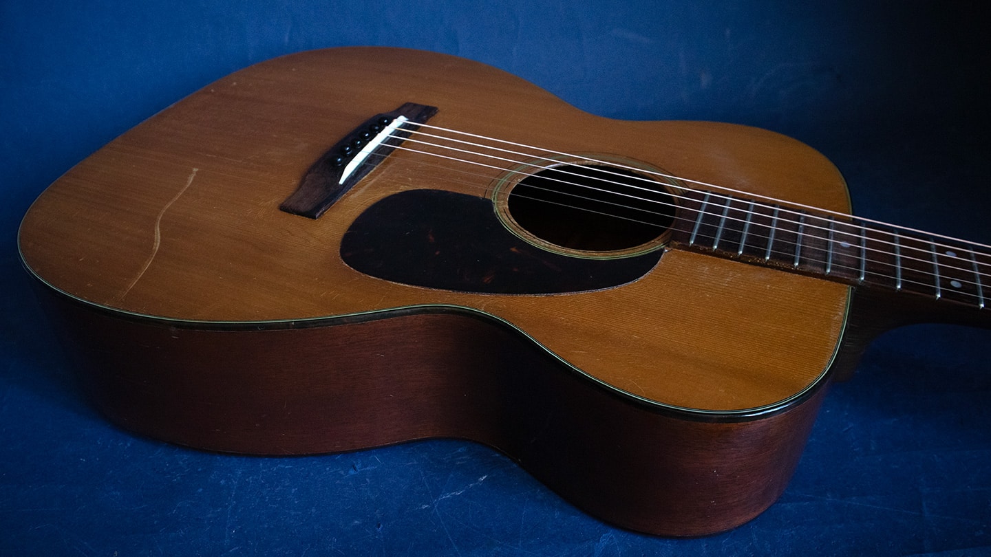 We will say it again: the tone is fantastic with long sustain, growl and a complex tonal palette you’ll love. Comes with a 70’s blue Martin hard case. We love cool old guitars.