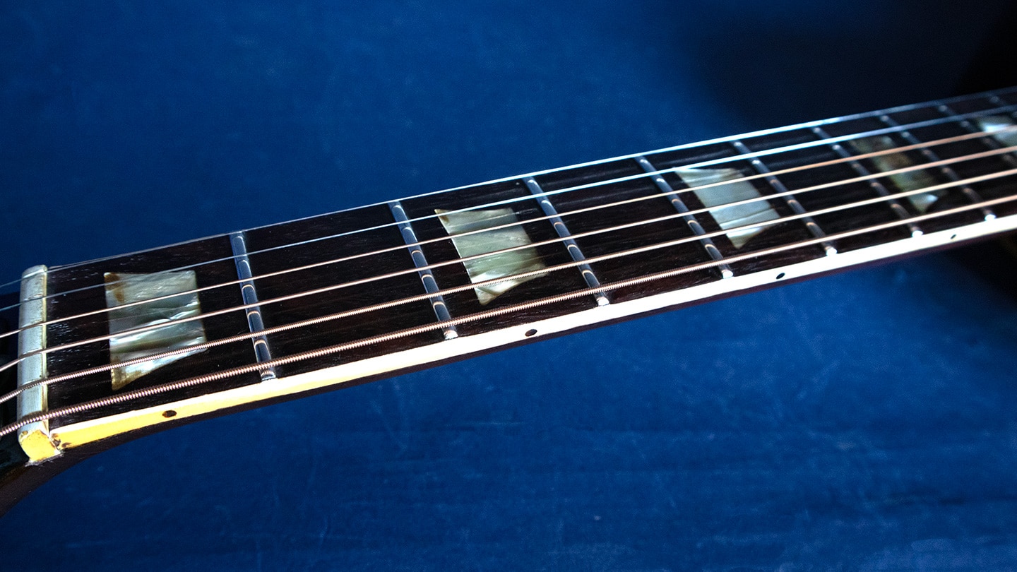 This one has been professionally refretted and plays great with easy action. The finish has also been buffed to look newer. But it’s all original finish, electronics and Kluson tuners. It looks and feels great. And as we said before it sounds great too. Get your Beatles on learn “Nowhere Man”. Comes with a period correct non-Gibson beat soft shell case.