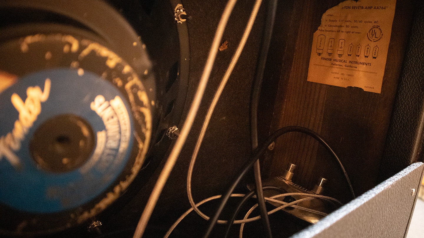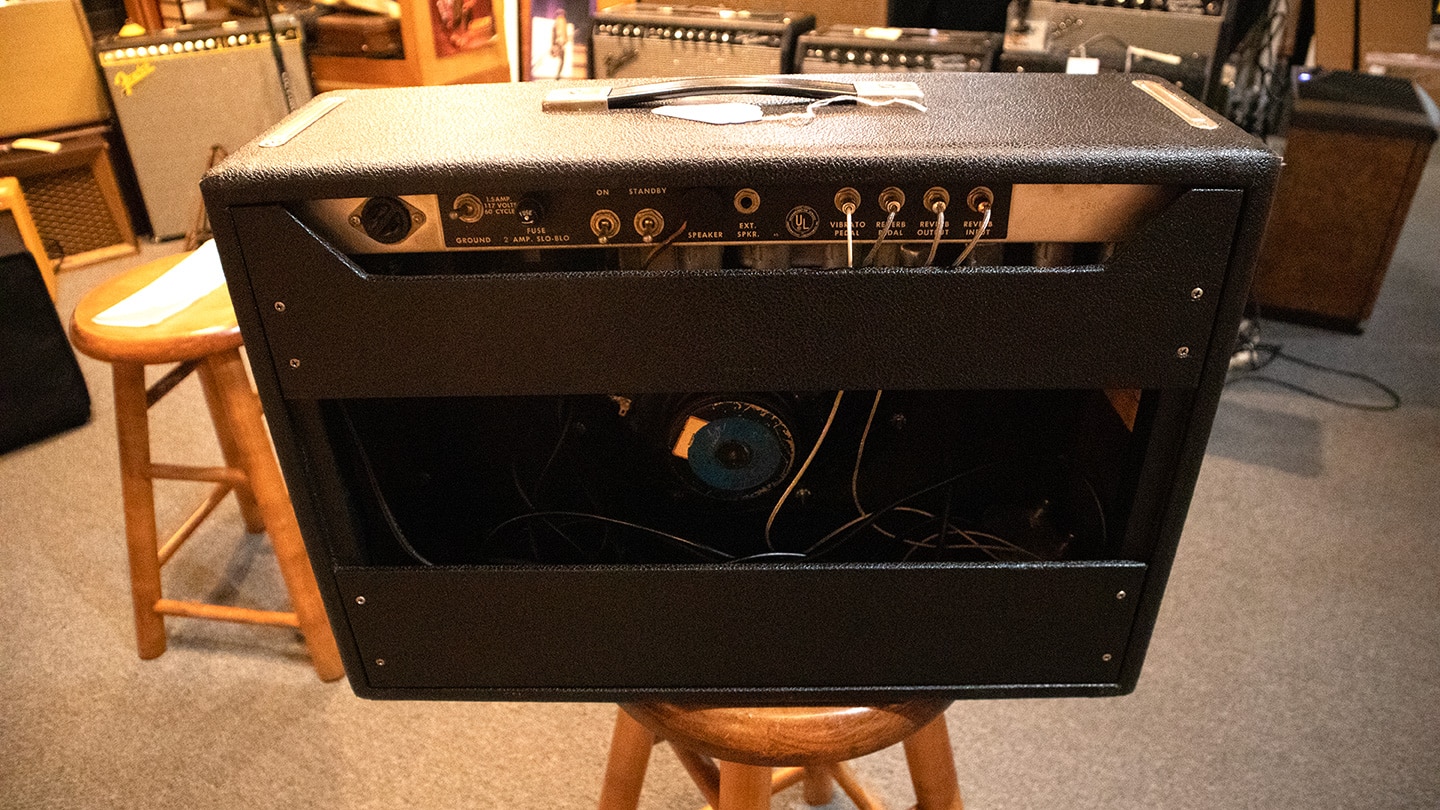 Silver Face with drip edge trim. These are cool 60’s hand wired amps built to the standard that only expensive boutique amps are built to today. The most famous amp in the world, especially now. 25 watts, reverb, tremolo and two channels. Perfect for most gigs. Has a replaced three prong cord that indicates its been serviced. The amp runs well and sounds great. One item: This amp has a Princeton Reverb tube chart. This is the third amp this year we’ve seen with the wrong tube chart. See our Bandmaster amp with a Showman tube chart. Comes with footswitch.