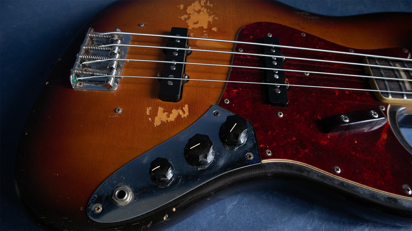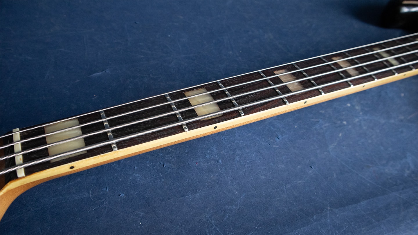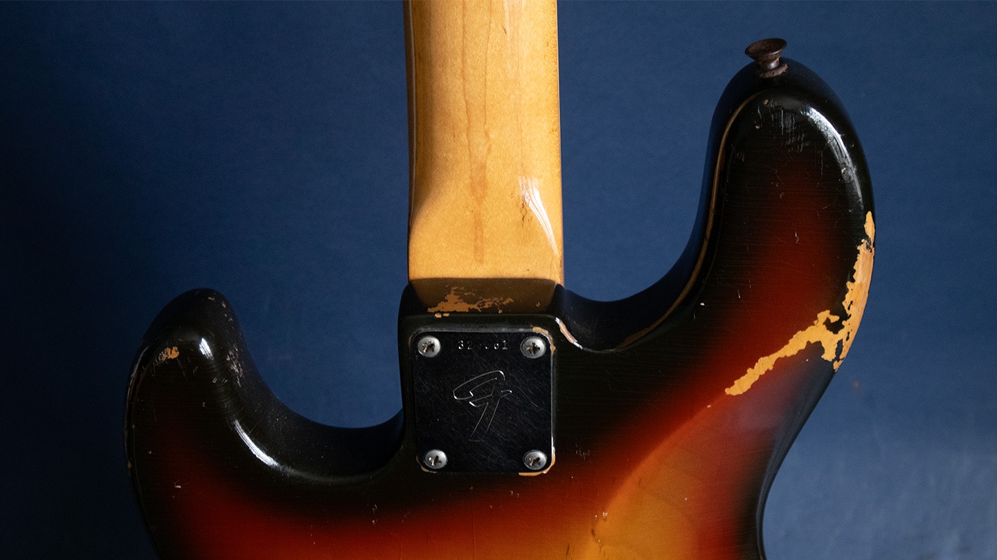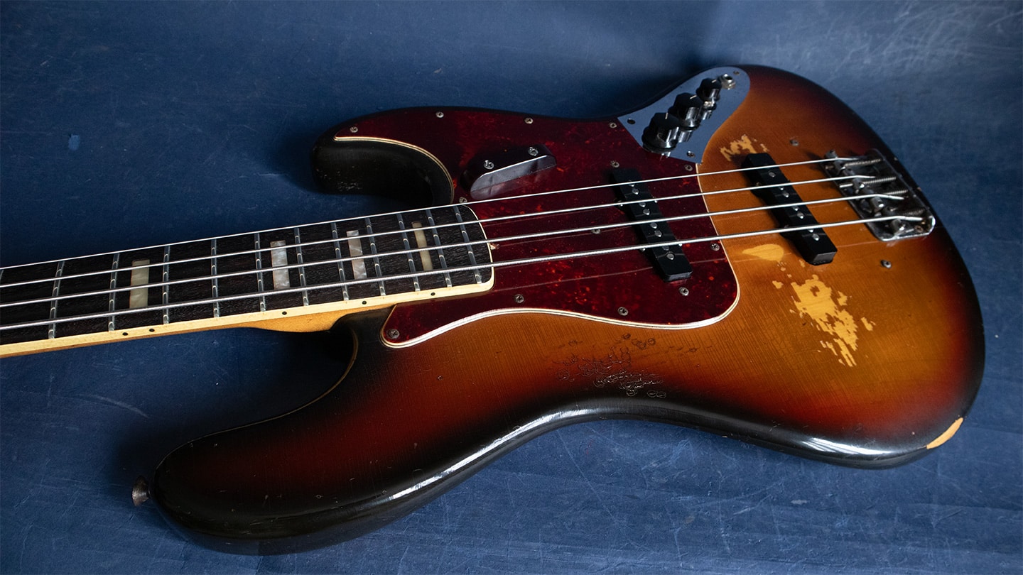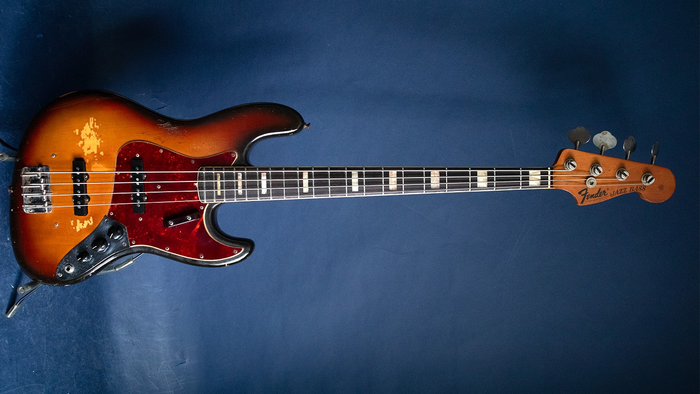 Sunburst, VG+, neck and pots both dated 1971. A very resonant and long sustaining bass from the four bolt neck era. A nice rounded neck. We love Strat and Jazz bass necks from this era. The pickups are made by Ted Vig and sound great and are well matched. The body has a good color and wood grain. It does show more playing wear on the front and some on the back. This one has been played and sounds all the better for it. Comes with the original hard case and bridge cover.