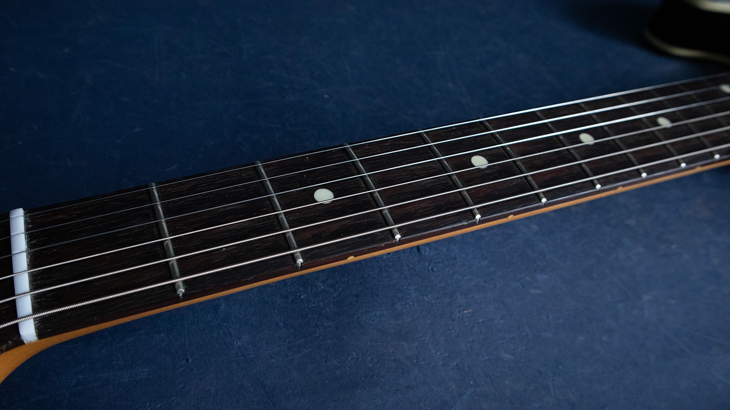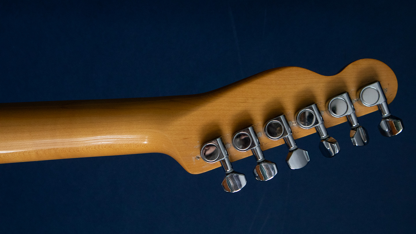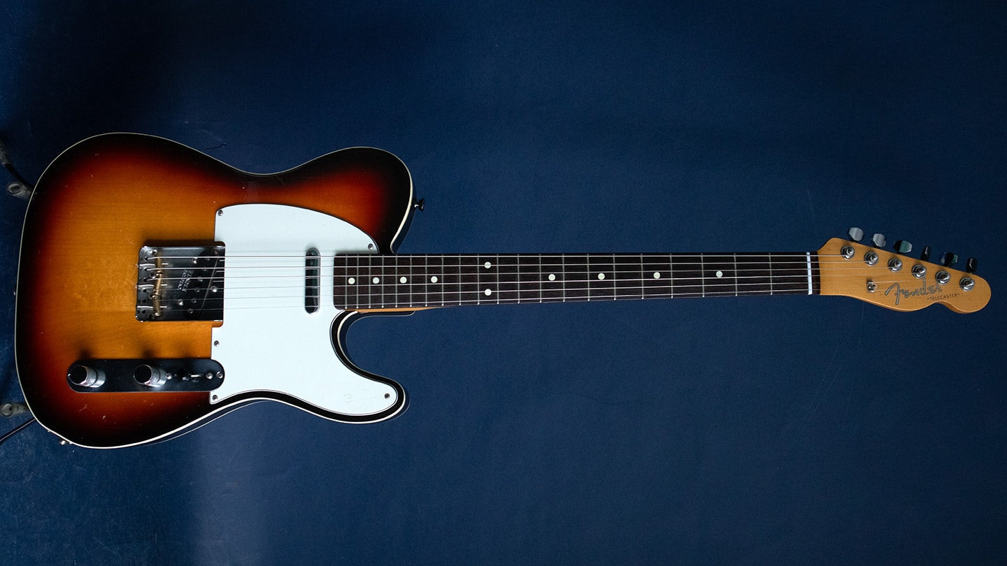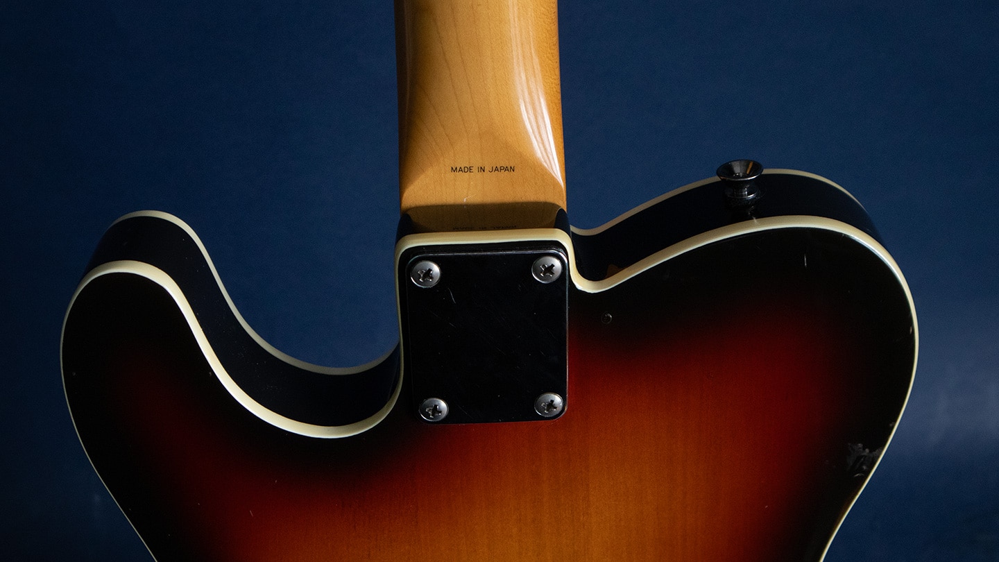 Three Color Sunburst, double bound body. A nice light cool looking MIJ Telecaster with upgrades. They include Custom Shop Twisted Tele pickups, new tuners, new pots and a new bridge. The serial number was on the old bridge but the new bridge is a Fender deluxe with brass saddles. The pickups sound…well…custom shop like great! The old string tree screw is in the headstock next to the new string tree. Nice and light at 7.4 pounds. Comes with a brown hard shell case.