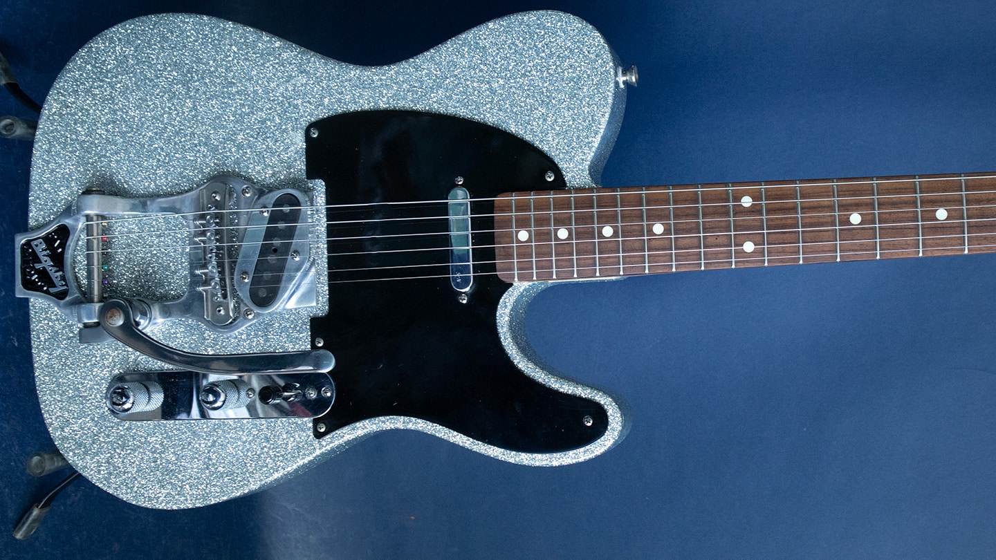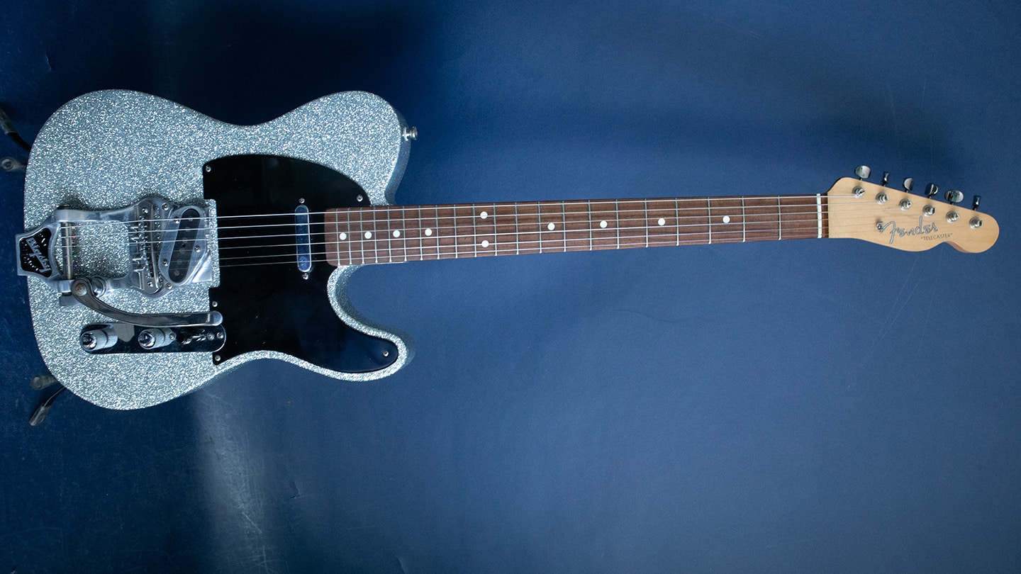 Tags: Bigsby, metal flake, scn noiseless, silver sparkle, used telecaster