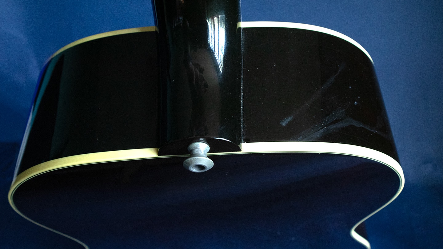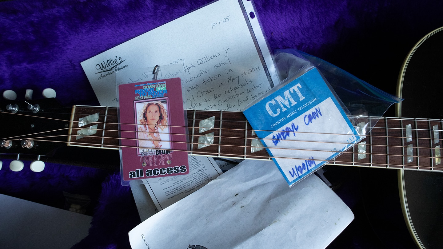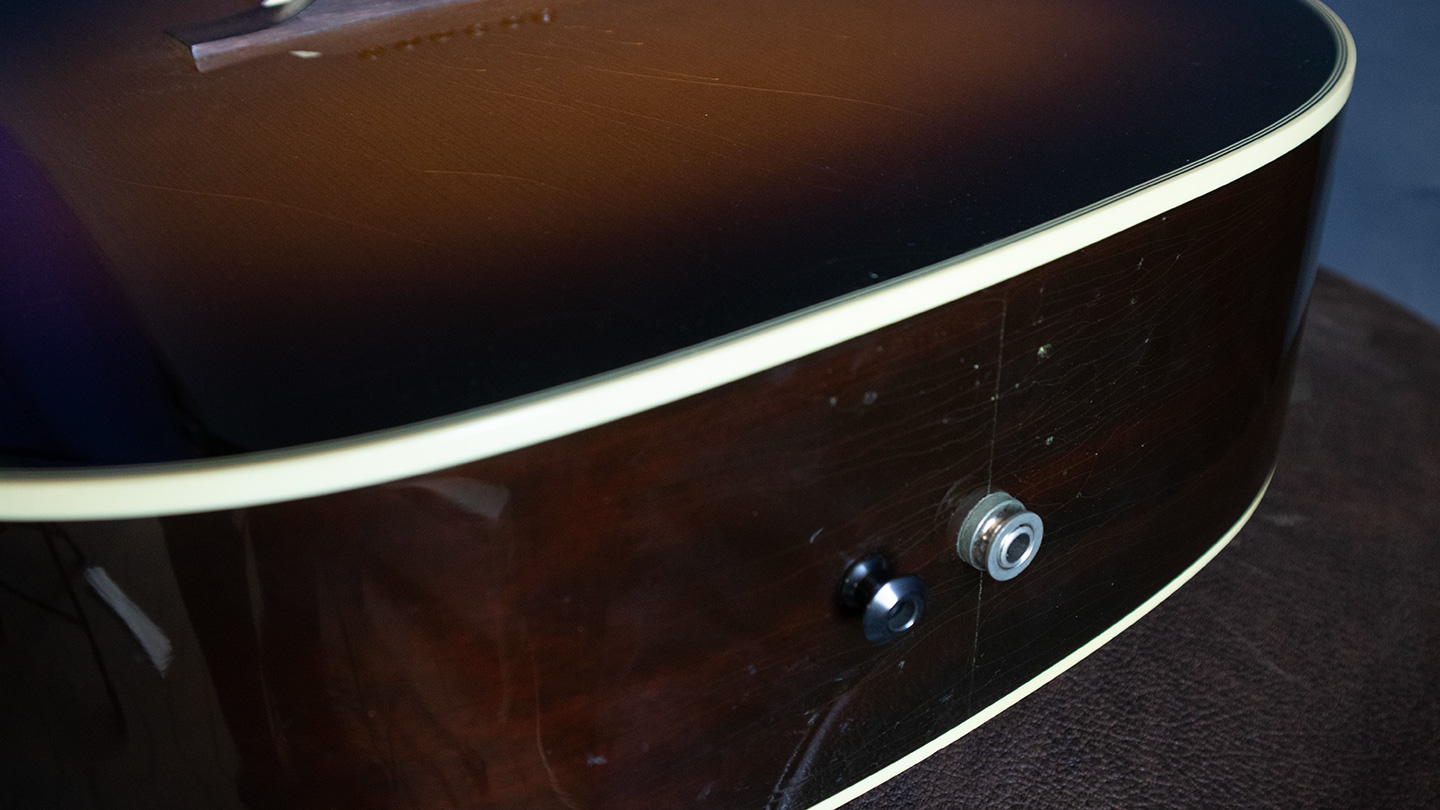 Sunburst, owned by Sheryl Crow and used as a stage guitar from 1999 through 2011. This is a Hank Williams Jr. model with Sheryl’s pickup system she used at the time with the jack and strap button separate.