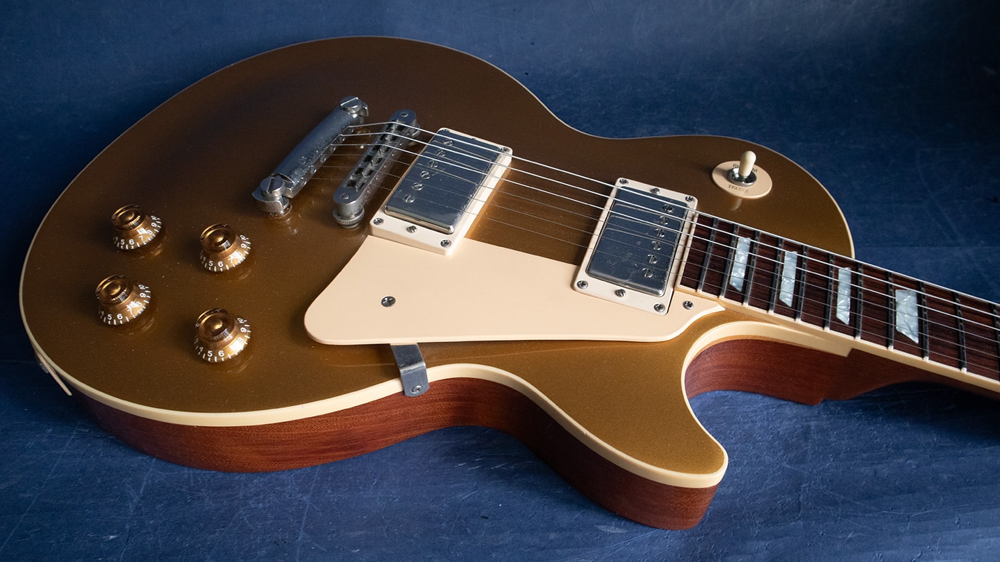 Goldtop, bound rosewood fretboard with crown inlays, cool goldtop in good shape, no breaks or repairs, some playing scratches on the back and a couple of nicks on top, weighs 9.5 pounds, very resonant unplugged, comes with the original hard case and papers.