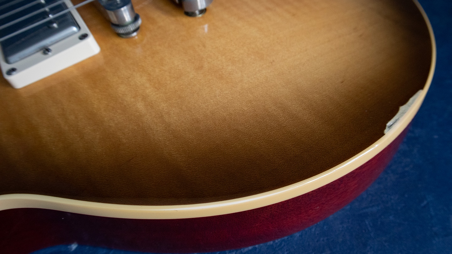 Clean with just some minor (arguably kind of cool) arm wear, no breaks, lovely Honey Burst nitrocellulose lacquer finish, AAA flamed maple with nice wide grain. Decent weight, very comfortable neck profile, responsive and resonant, plays very well. Great-sounding BurstBucker Pro alnico pickups so it sounds as good as it looks and plays. The previous owner added the Gibson pickguard with Gibson’s clever pickup ring mounting system which requires no drilling, but the original rings are included if you prefer the factory no-pickguard look. A fine Les Paul Standard that is ready to accompany you to the stage or studio. Comes in newer Gibson hard case, made in Nashville, Tennessee, USA.