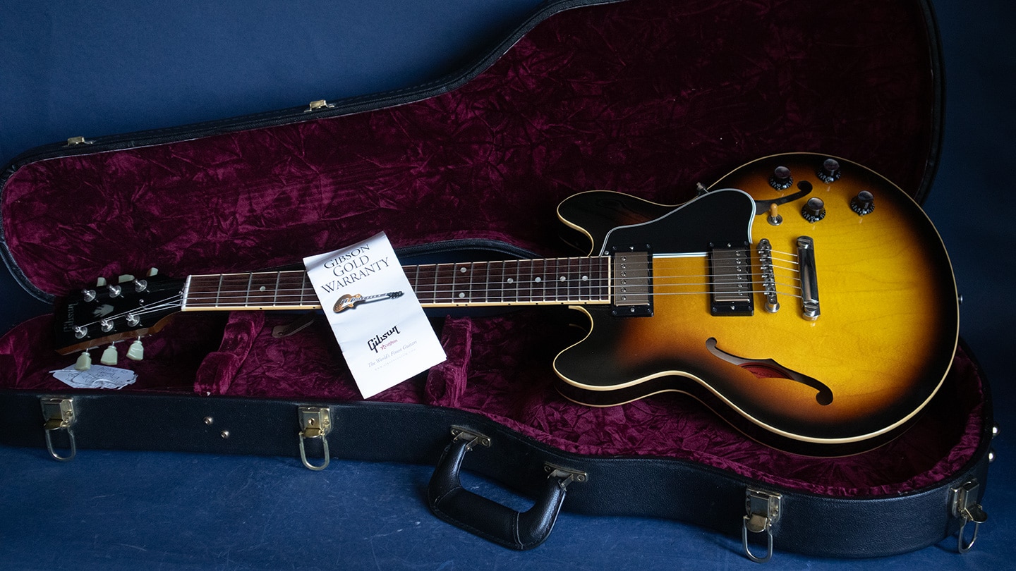 Sunburst, minty unplayed condition. And.. we must say a really handsome guitar from the first year of issue. For those that don’t know 339’s are 14” wide across the lower bout while a 335 is 16” and a Les Paul is 13”. These have ’57 Classic pickups and semi-hollow construction with a solid center block just like its bigger cousin the 335. The Gibson Custom Shop always uses elevated levels of wood and construction and this one is all of that. Comes with the original hard case and warranty card.