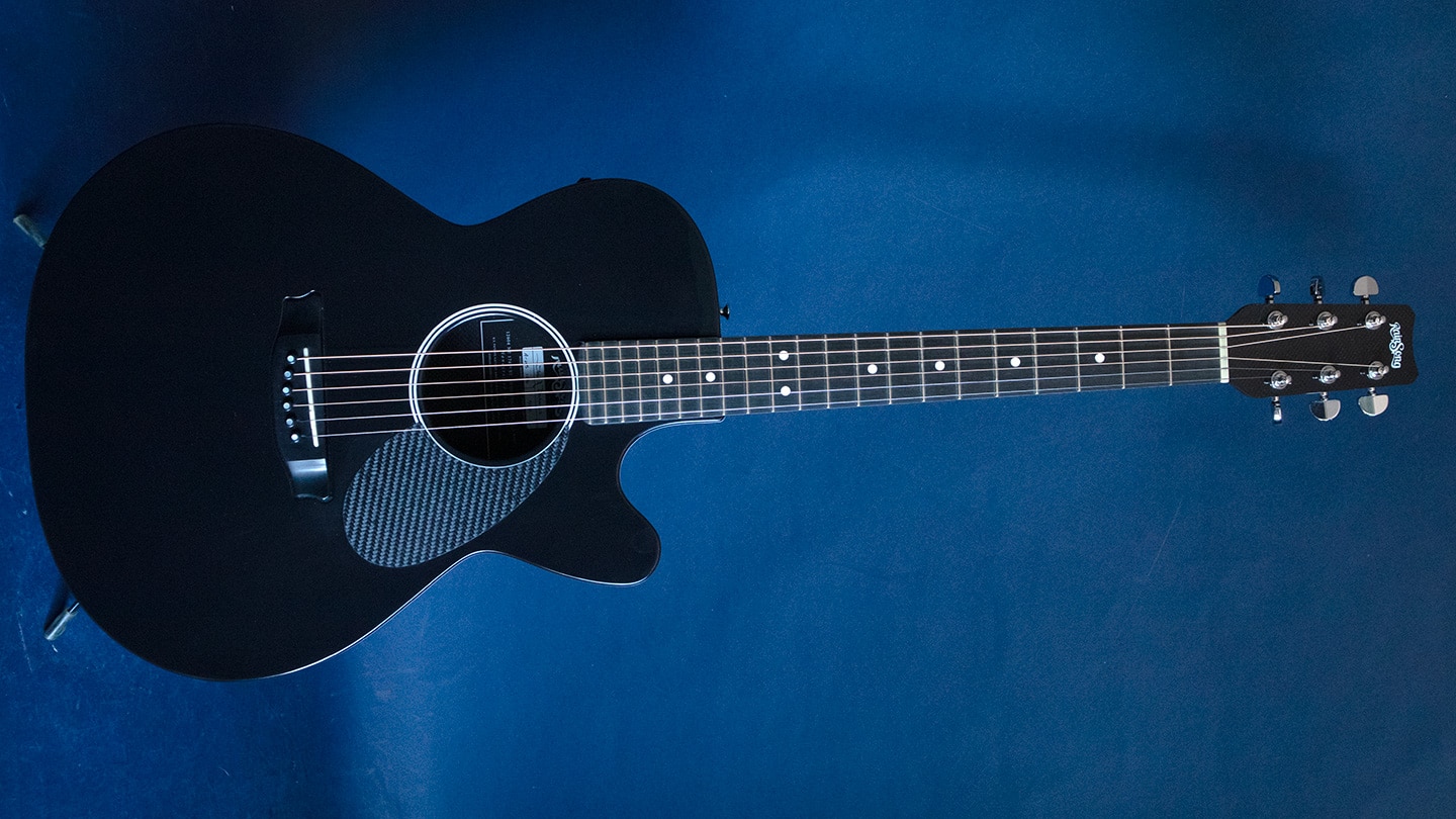 Natural graphite soundboard, graphite body with no bracing, super low profile neck and composite fingerboard, 1 3/4” at nut, tusq nut, factory stock LR Baggs Element pickup system with onboard EQ and notch filter, perfect acoustic for drier climates, put your humidifier away, it will never crack or let you down. Sounds great you won’t believe there isn’t a sliver of wood anywhere on it. Comes with the original gig bag.