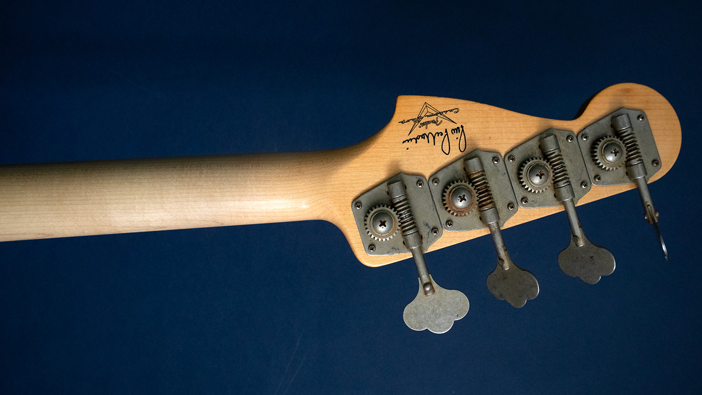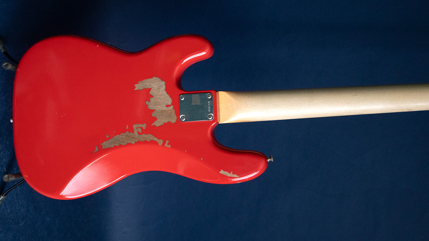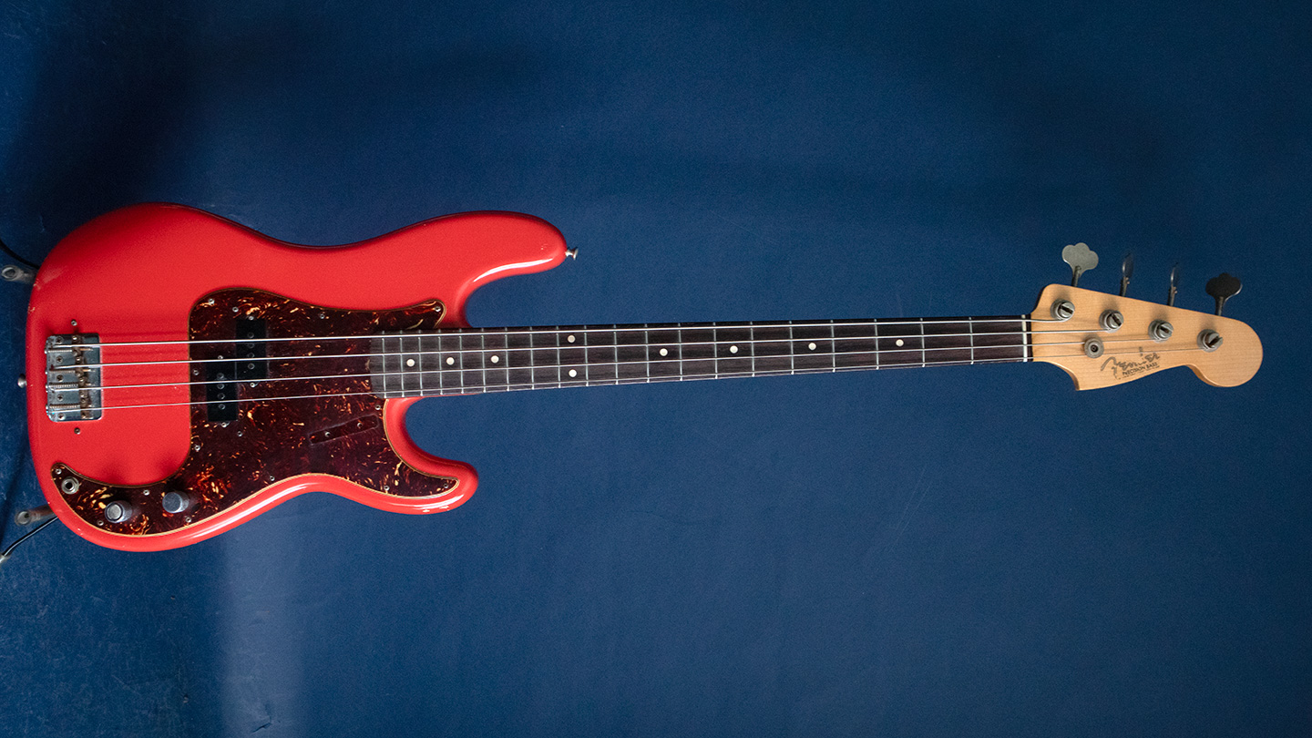 Made during the Mike Eldridge era. Modeled after his 1961 P-Bass that is Fiesta Red over Desert Sand with the pickup made to his exacting standards. The neck was based on his ’63 Sunburst model. So this blends the best of both. Pino is a customer of Willies and we always had nice chats with the Welsh gentleman at Who shows.