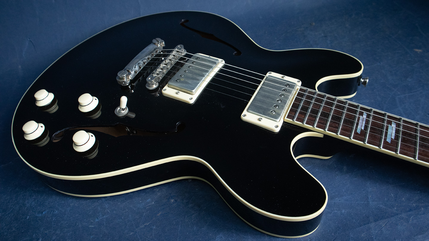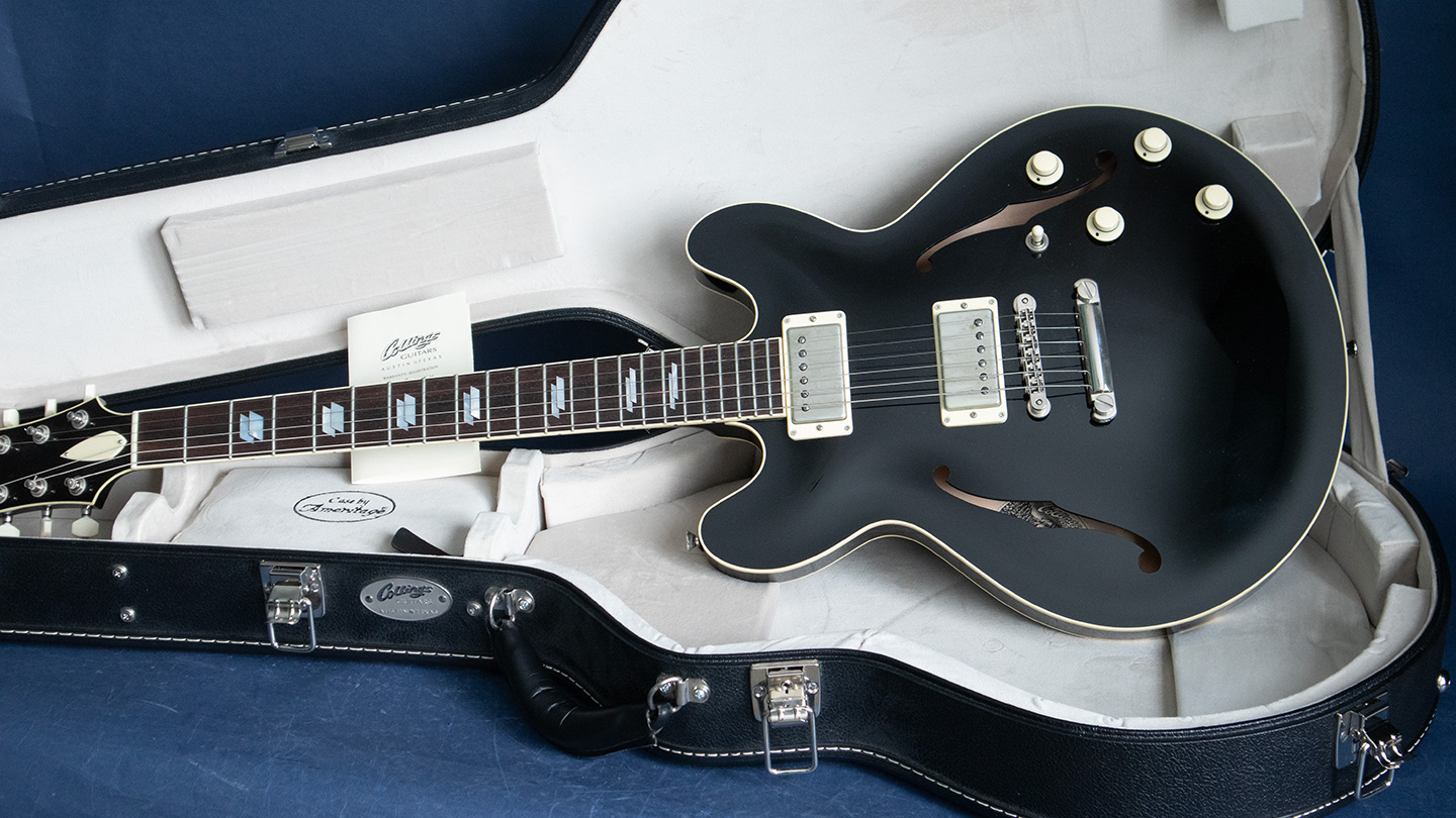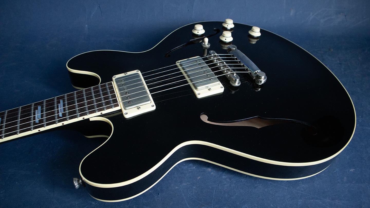 We sold this new in 2014 and sent Collings a set of Duncan Antiquity humbuckers to install at the factory. They are a toneful PAF clone that is still a favorite of ours. Collings uses a proprietary laminate construction with a maple/spruce center block for a drier woodier mid range. The contrast of the Jet Black finish with the white ivoroid trim and aged nickel hardware is striking. The perfect fretboard and ultra high quality ooze out of this guitar and the tone is a heartbreaking mix of complexity and articulation. Lots of sustain and every note true. This was made during the Bill Collings era. We have to say the quality standards are just as high now but some people love the “Bill” era. Comes with the original hard case and papers. You need this.