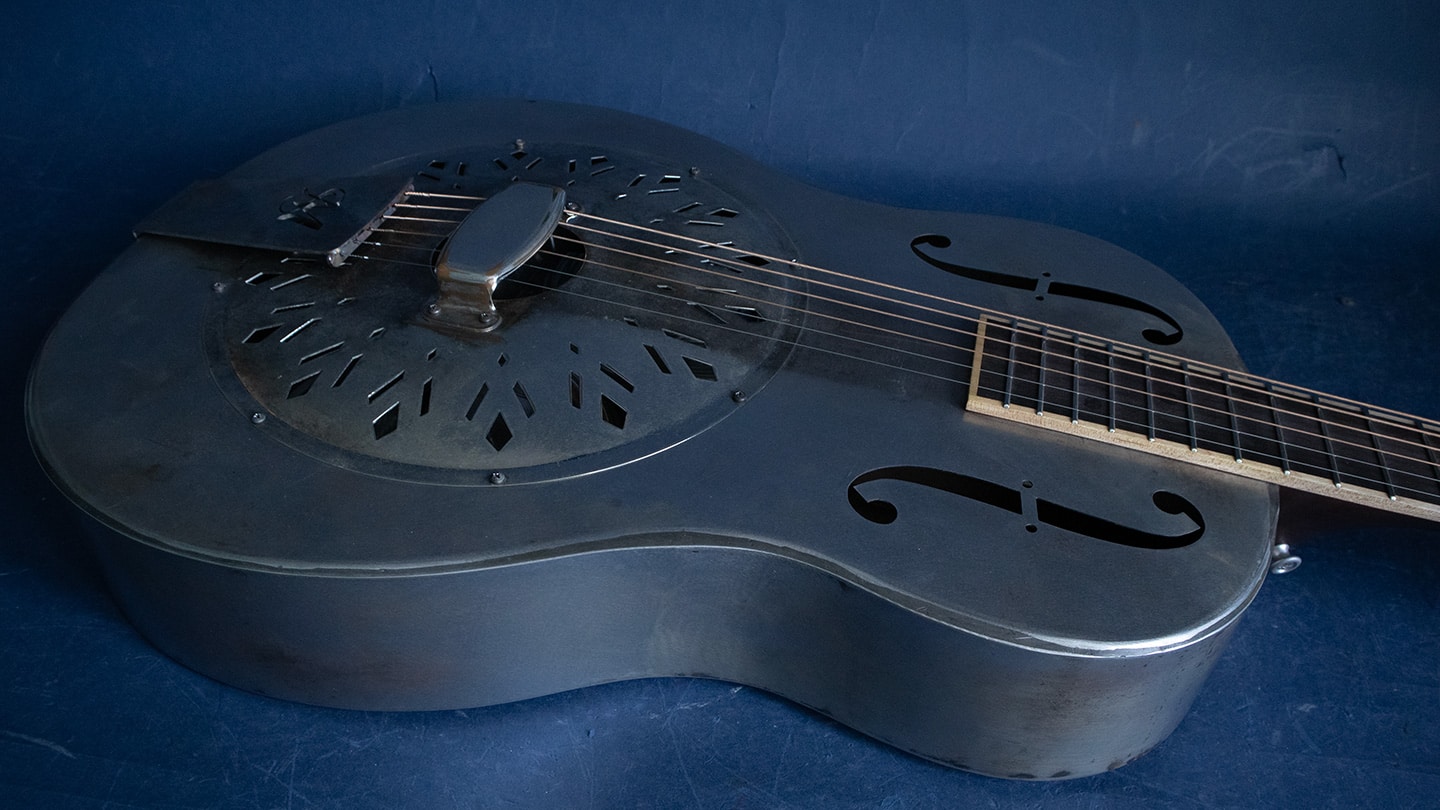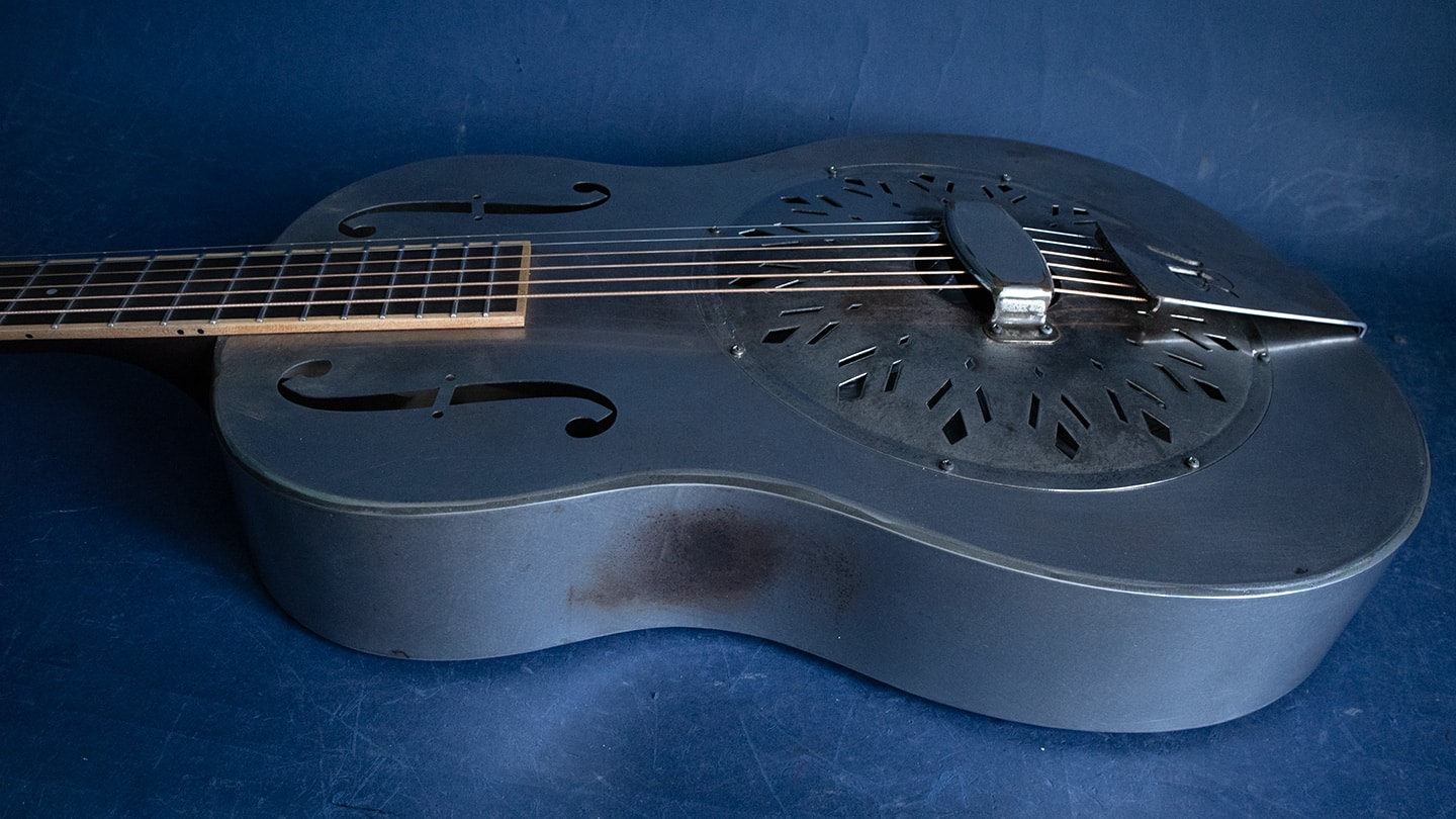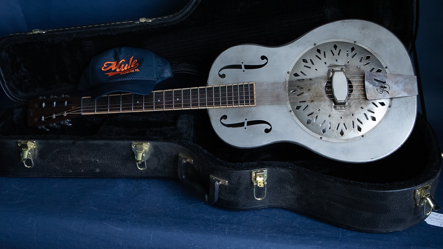 Unique handmade guitars. This one is serial number 209. We’ve been told they started with 200. Has a bound fingerboard so it’s better to see the side dots, closed headstock, tri plate resonator, cool tailpiece and obviously aged. Each one we see is a work of art. The neck on this was shot. We sent it back to the good people of Mule who put a brand new neck on it. So it’s set up and plays great. Comes with the original hard case.