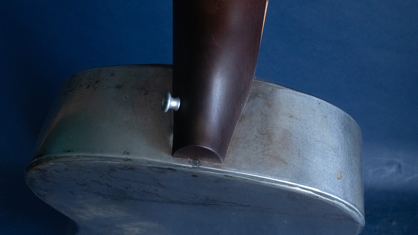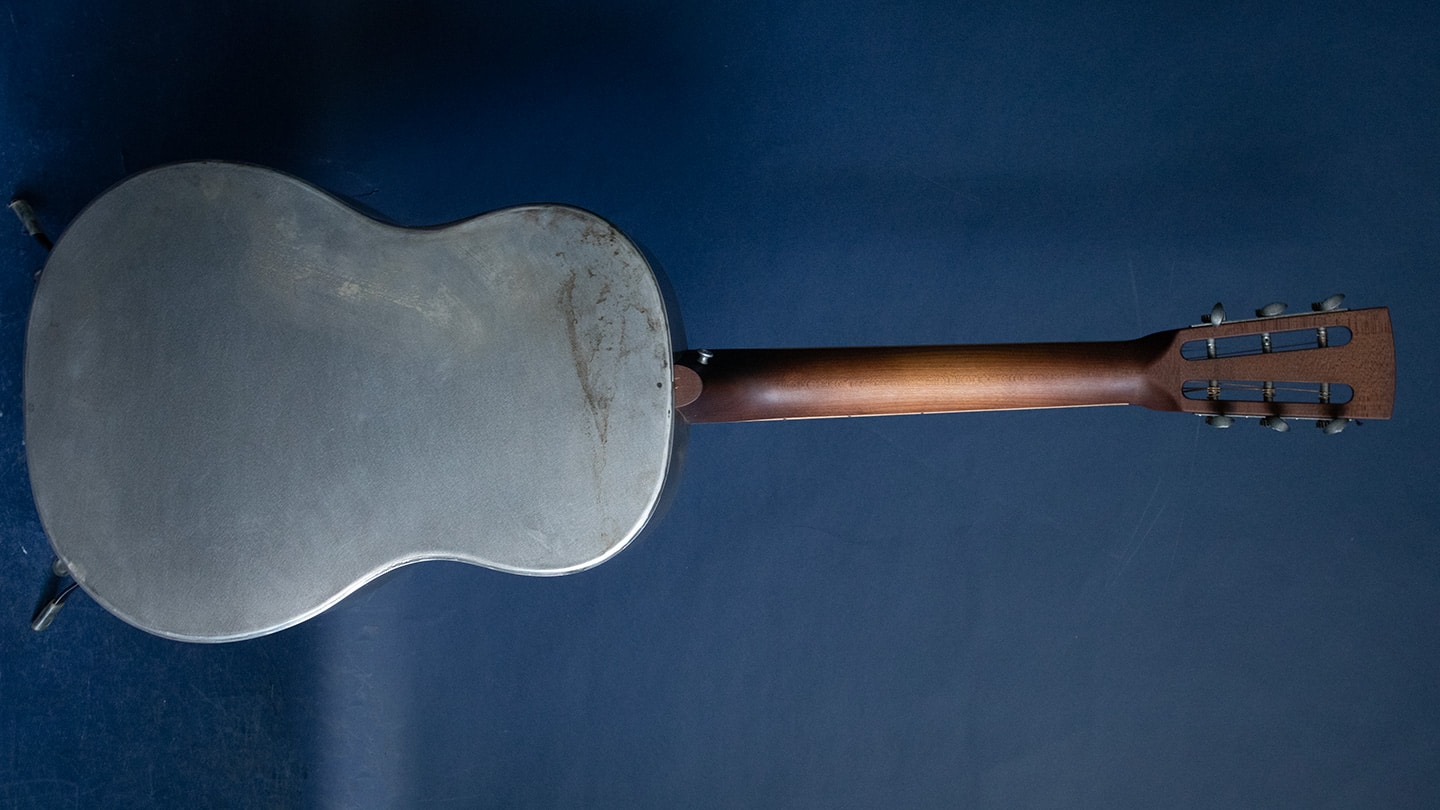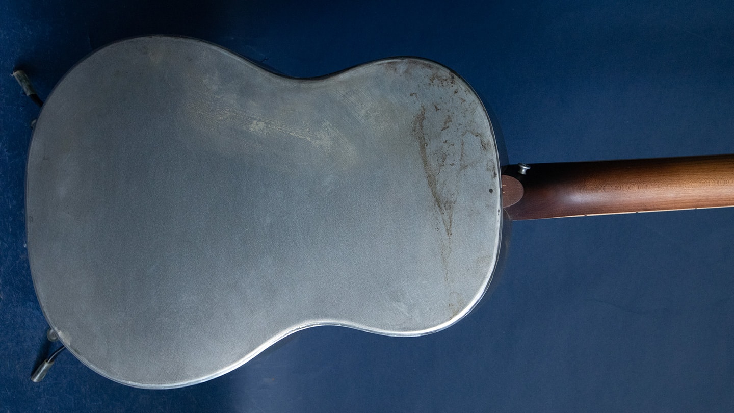 Unique handmade guitars. This one is serial number 209. We’ve been told they started with 200. Has a bound fingerboard so it’s better to see the side dots, closed headstock, tri plate resonator, cool tailpiece and obviously aged. Each one we see is a work of art. The neck on this was shot. We sent it back to the good people of Mule who put a brand new neck on it. So it’s set up and plays great. Comes with the original hard case.
