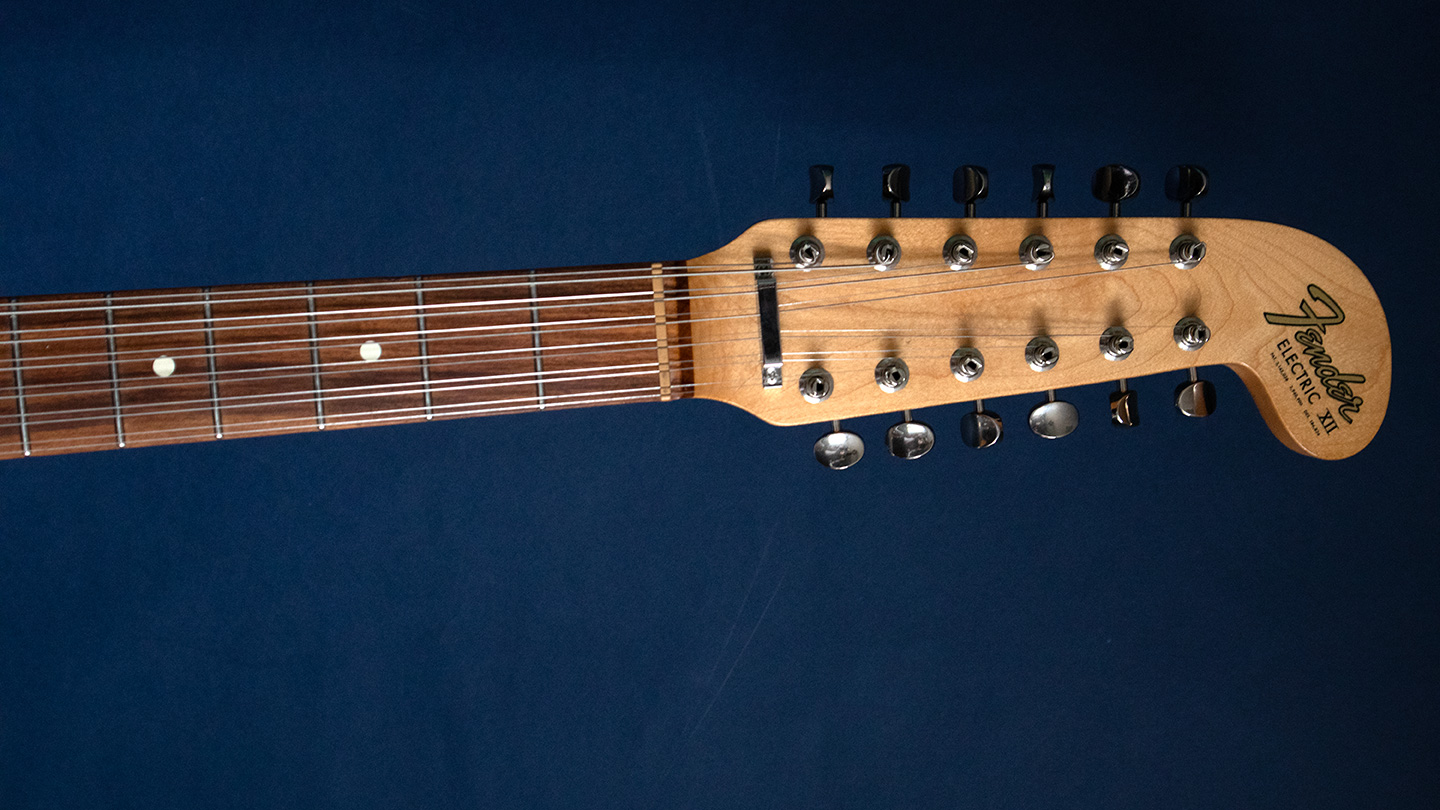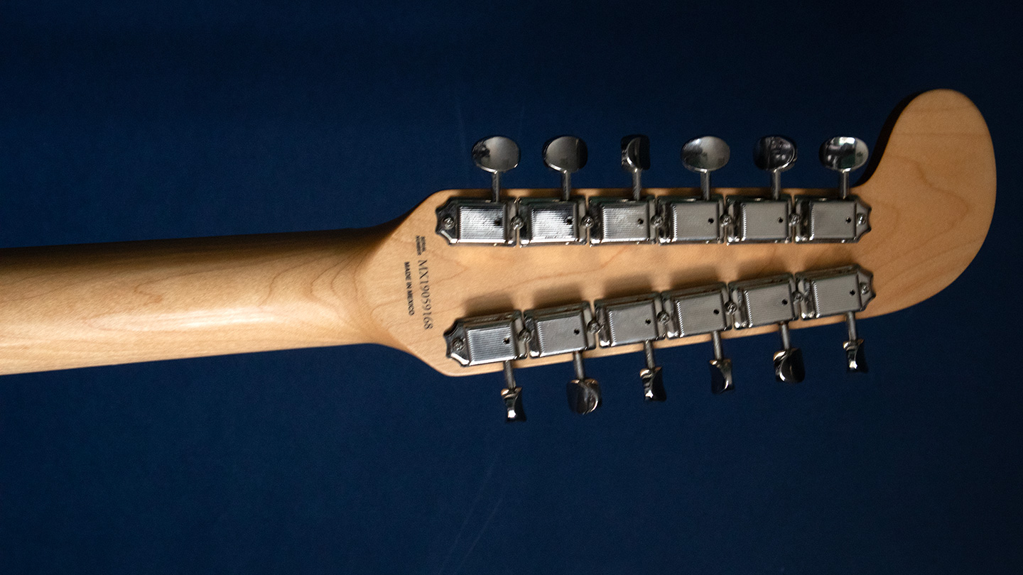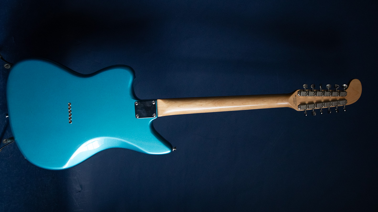 Lake Placid Blue, alder body, Pau Ferro fretboard with dot inlays, dual split coil Electric XII pickups, three way selector switch. Fully adjustable hardtail bridge. In good shape, just a few dings on the front and back. A fine utility 12 string. Comes with a gig bag.