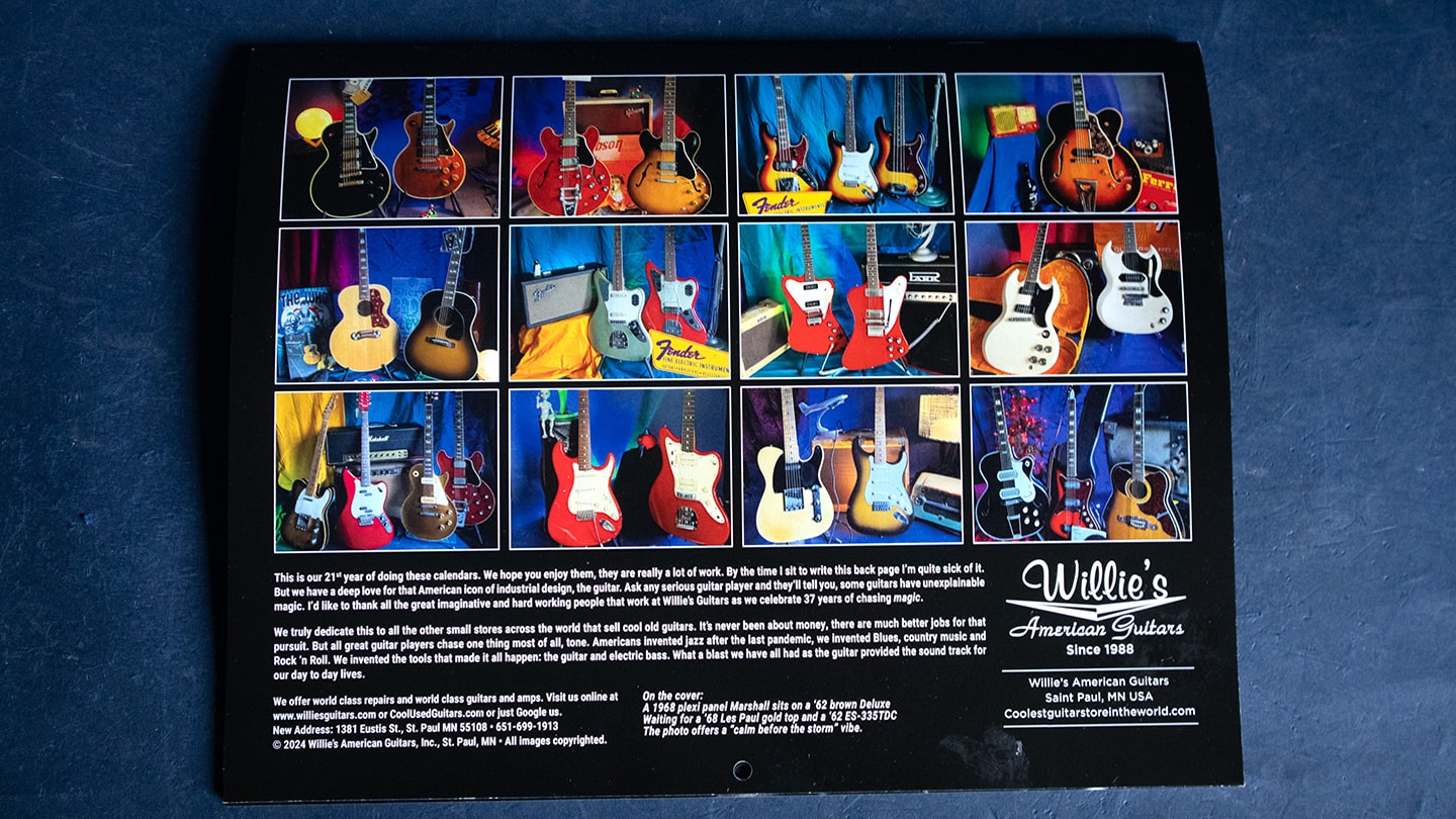 New Vintage Guitar Calendar featuring jaw-dropping cool vintage gear. $20 includes postage via USPS.