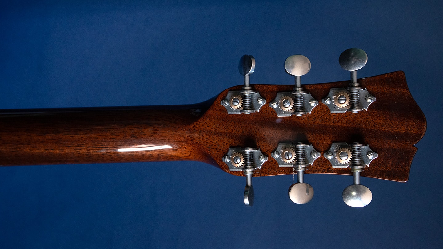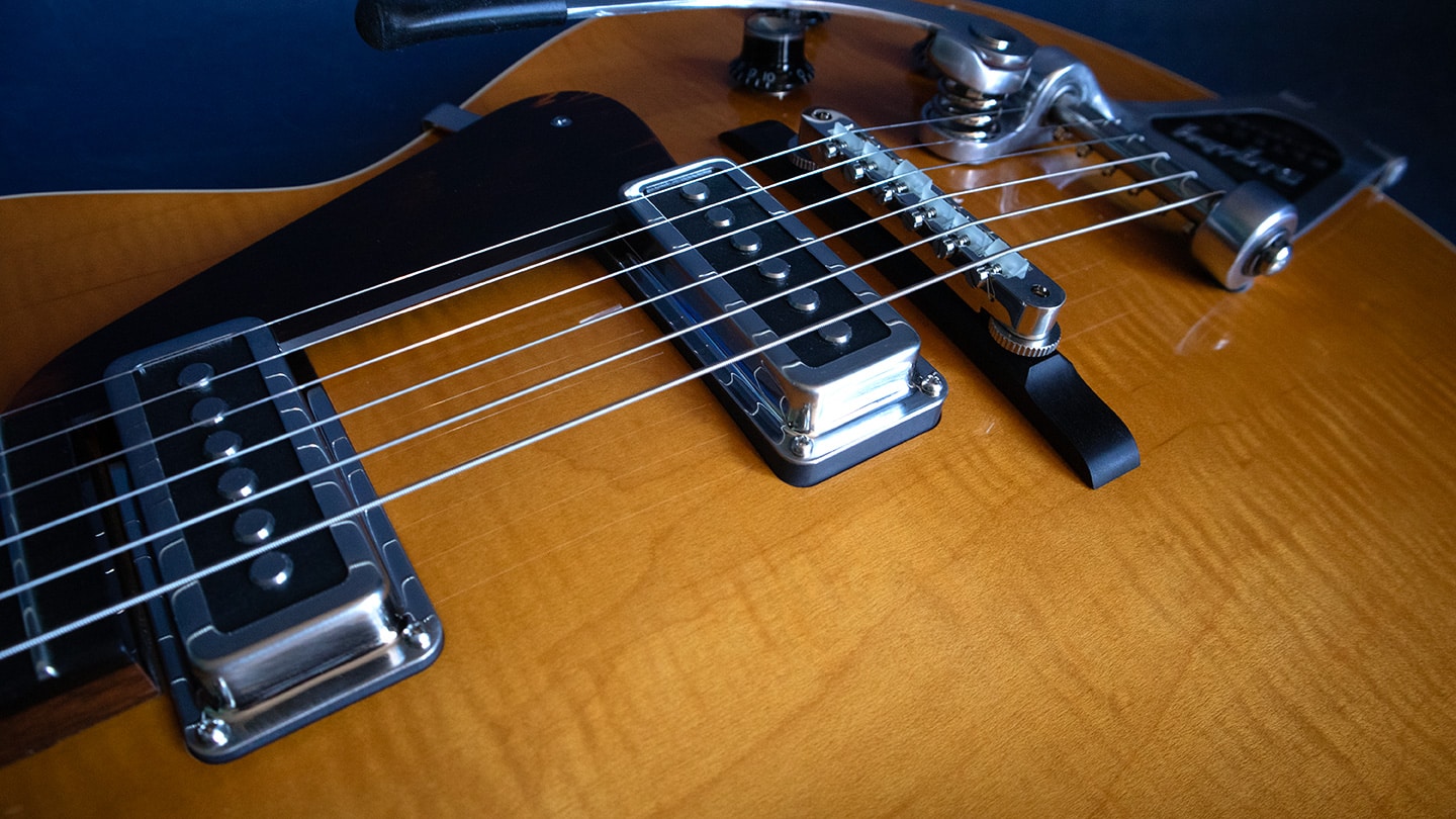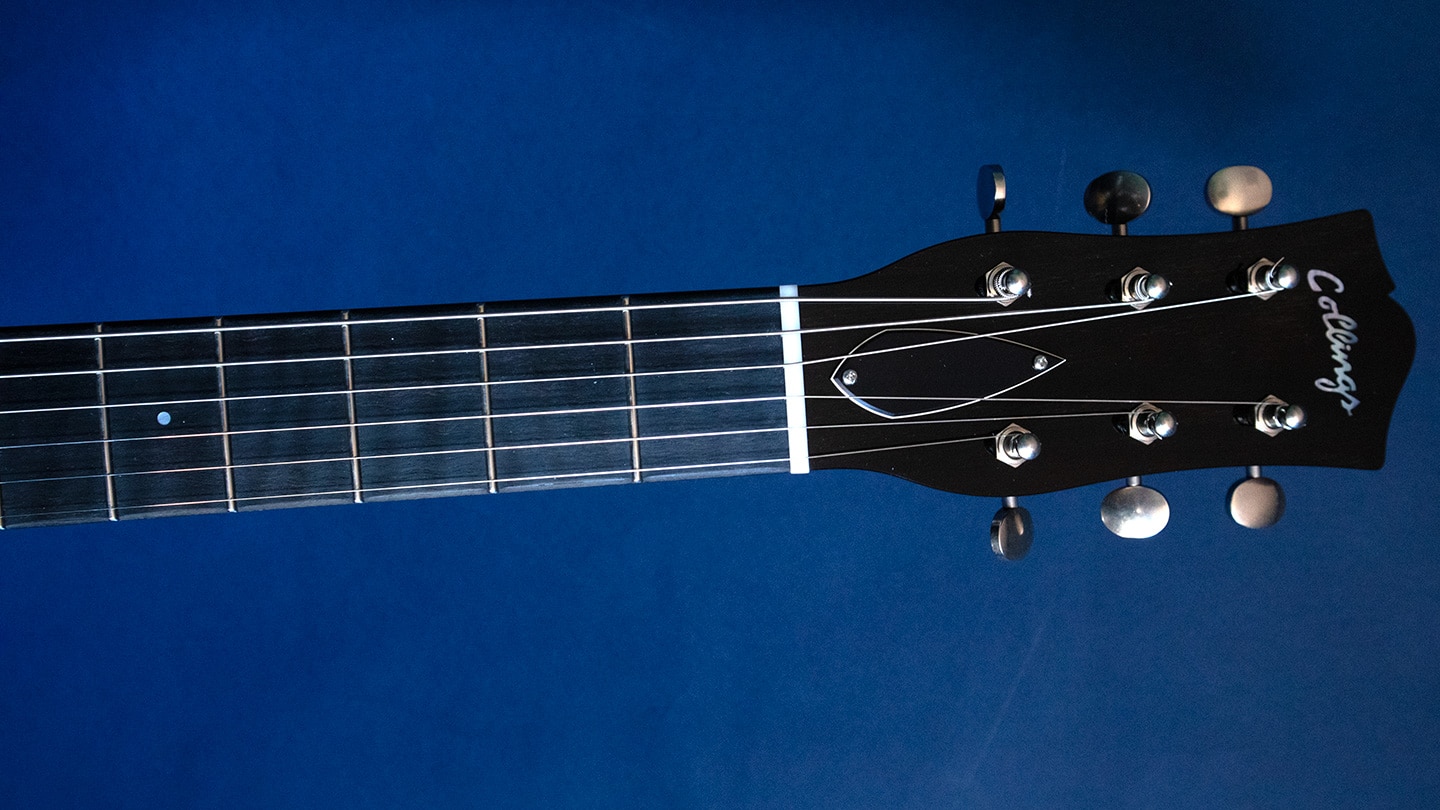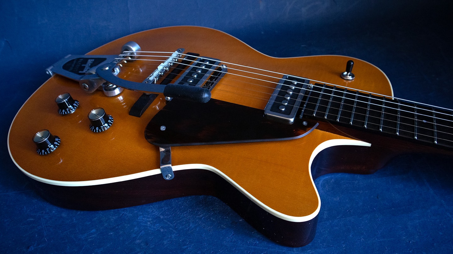 Antiqued Blonde finish. Designed after exhaustive collaboration between Julian Lage and the super-focused Collings electric team. Custom laminated maple top over mahogany back and sides. Trestle-braced to eliminate feedback yet enhancing acoustic properties. These guitars have no options but are the number-one selling guitar in Collings’ impressive electric lineup. The Ron Ellis pickups astounded our ears. Clear, articulate bass and the “rifle click” snap that makes every note stand out even under high distortion. Magnificent. Why buy a vintage Gretsch Duo Jet and worry about it falling apart? Listen to Julian play one of these. You need one. With deluxe factory hard case, made in Austin, Texas, USA. #25687