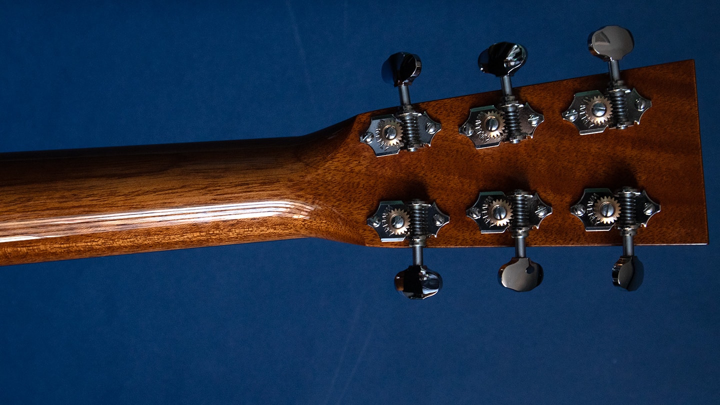 Now play it. Hear it? Thunder. Long sustain great warm mids and blooming bass that sounds kinda like thunder. This is gorgeous high grade Koa. It’s a $2250 option as good koa is rare. There is no average koa. Its more of an Ink Blot test…what do you see? A stunning guitar. Think pre-war Martin basic specs. It’s a 25.5” scale, 1 11/16” bone nut, modified V neck profile, ebony fingerboard and bridge with 2 3/16”string spacing. A real gem. Comes with a new deluxe hard case. #36061