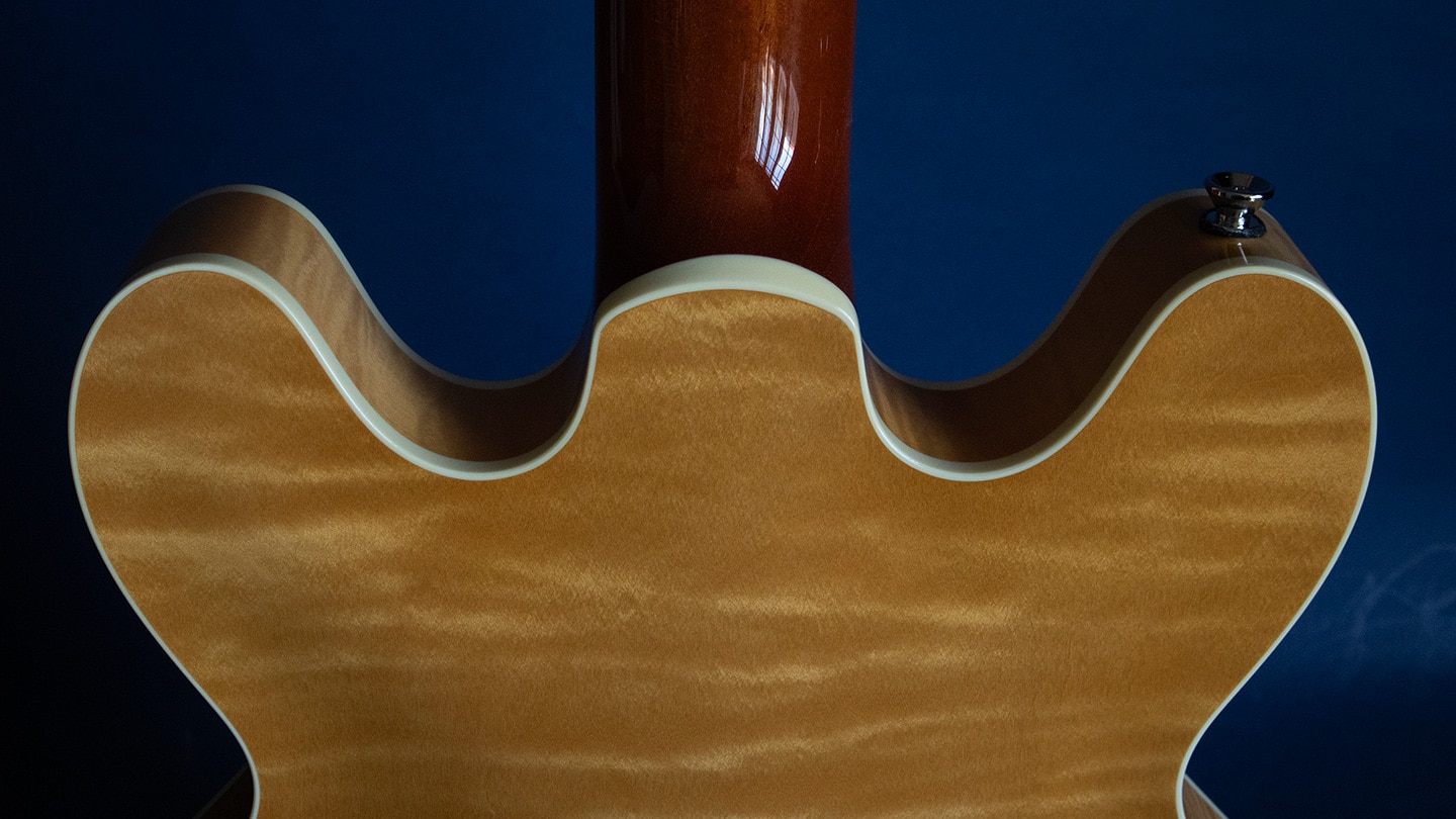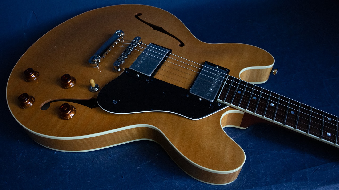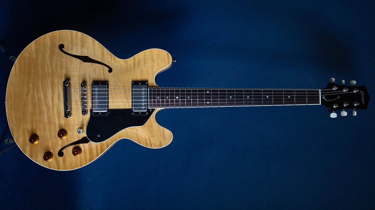 Blonde, another stunner from Austin Texas. A super comfortable slightly smaller semi-hollow, laminate bound maple top and back, mahogany neck, bound Indian rosewood fretboard with MOP dots, with optional Throbak SLE-101 Plus MXV humbucking pickups, striking flamed maple top and body, impeccable Collings build quality, an amazing guitar, comes with a new deluxe hard case. #25209