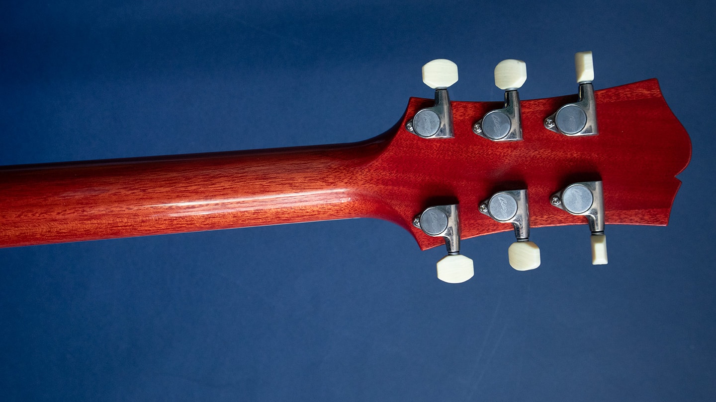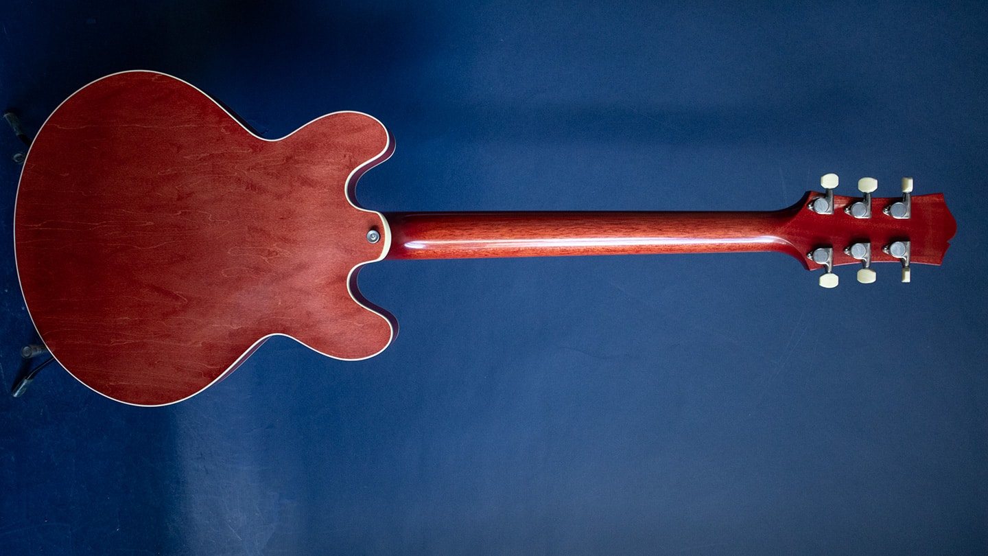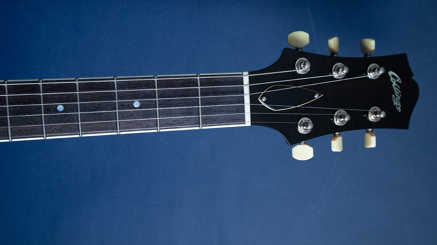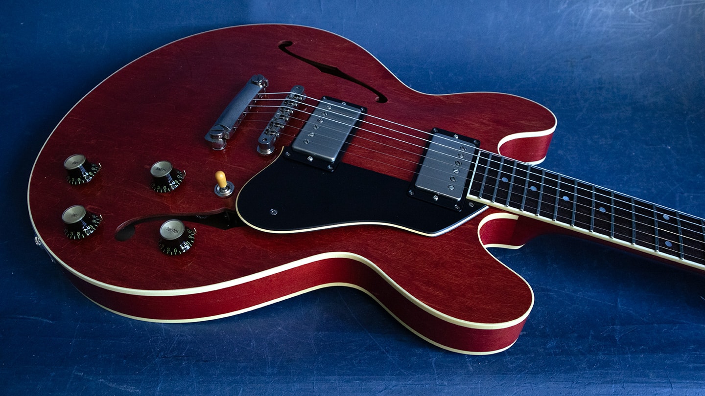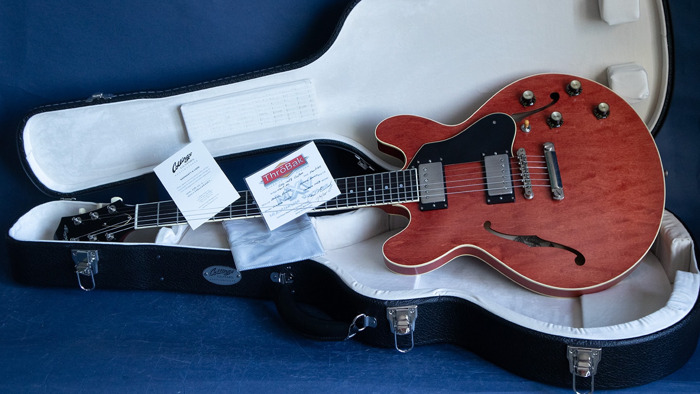 Aged nitrocellulose lacquer in warm and lovely Faded Cherry, which must be seen to be believed. The I-35 LC Vintage builds on the laminated-maple I-35 LC with features and construction designed to really capture the very natural feel of the early ’60s Gibson models it’s inspired by. Collings reworked the laminated maple body and spruce center block specifications, loaded it with a pair of Throbak ESG-102B humbuckers with “bumblebee” caps, and have tastefully aged the finish and hardware. Other features include a Honduran mahogany neck and rosewood fingerboard with a 1 11/16″ nut width, 24 7/8″ scale length, 12″ radius, .845″ neck depth at the 1st fret and .947″ at the 9th, Kluson ABR-1 and stoptail, and Collings-branded nickel Gotoh tuners with ivoroid buttons. Nice and light at 6.7 pounds, unparalleled build quality and attention to detail, supreme playability, great looks. Comes in deluxe Ameritage hard case, made in Austin, Texas, USA