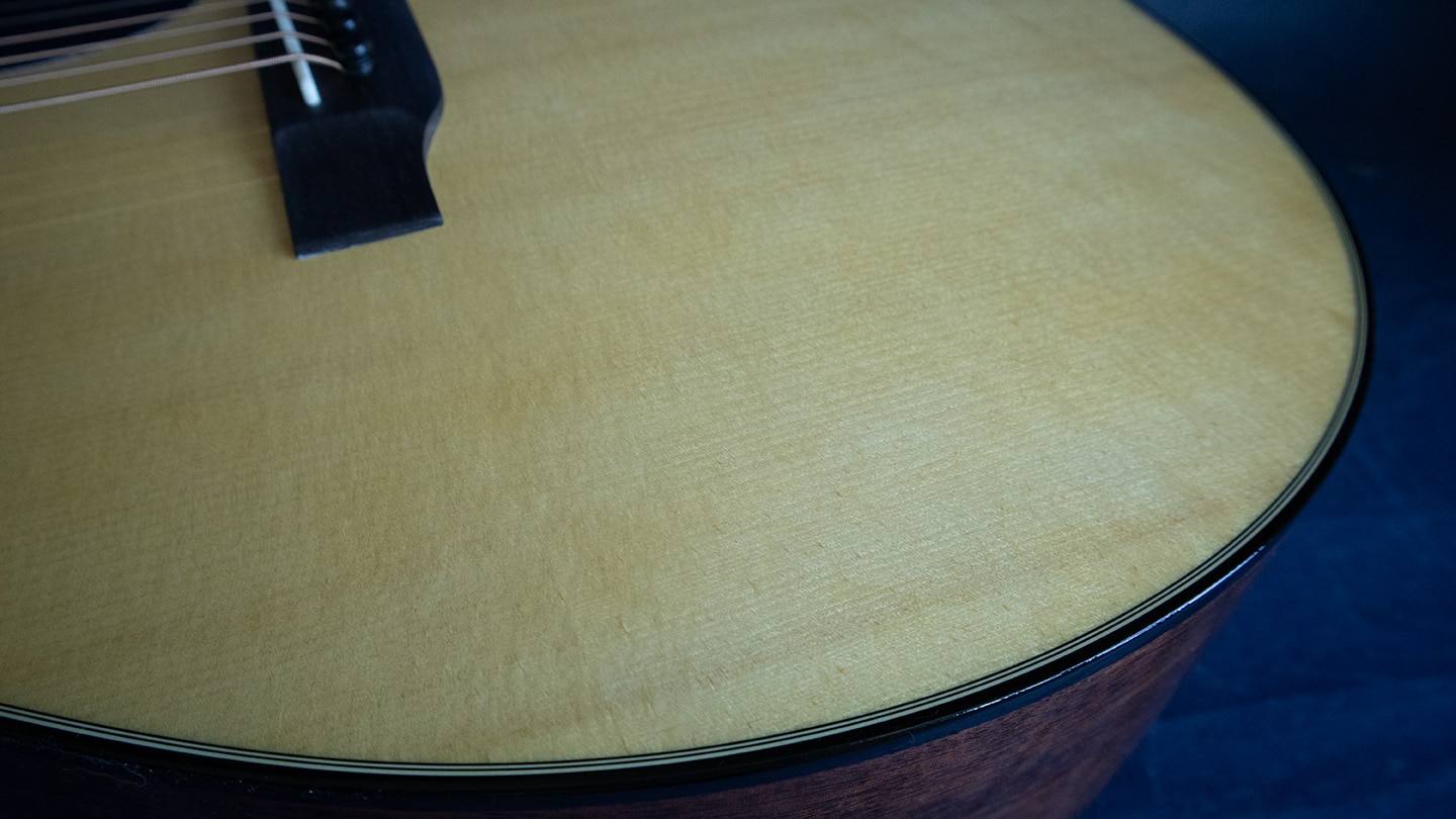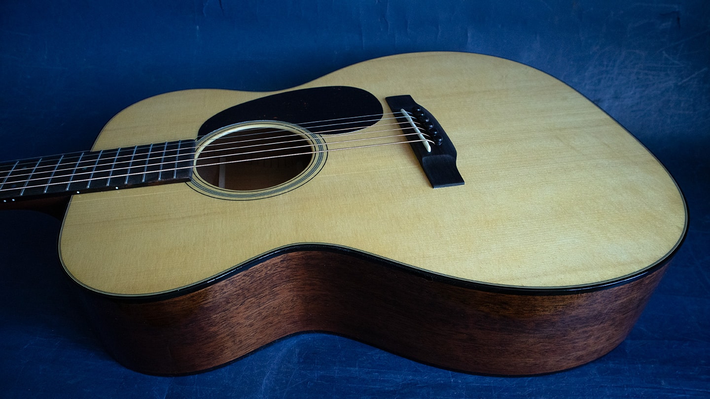 Natural with aging toner, an outstanding example of Martin’s Custom Shop craftsmanship. A 000 with our favorite custom top of Adirondack Spruce. Has that crisp mahogany tone with the added power of an Adirondack Spruce top. Every note is clear, concise and articulate. Other features include 24.9” scale, an ebony fingerboard with style 18 abalone dot inlays, modified low oval neck profile, 1 11/16” nut width, 2 1/8” string spacing, scalloped top bracing, and Nickel Grover Sta-Tite tuners with vintage knobs. We waited over a year for this one, a great new Martin Custom guitar. Comes with a new hard case.