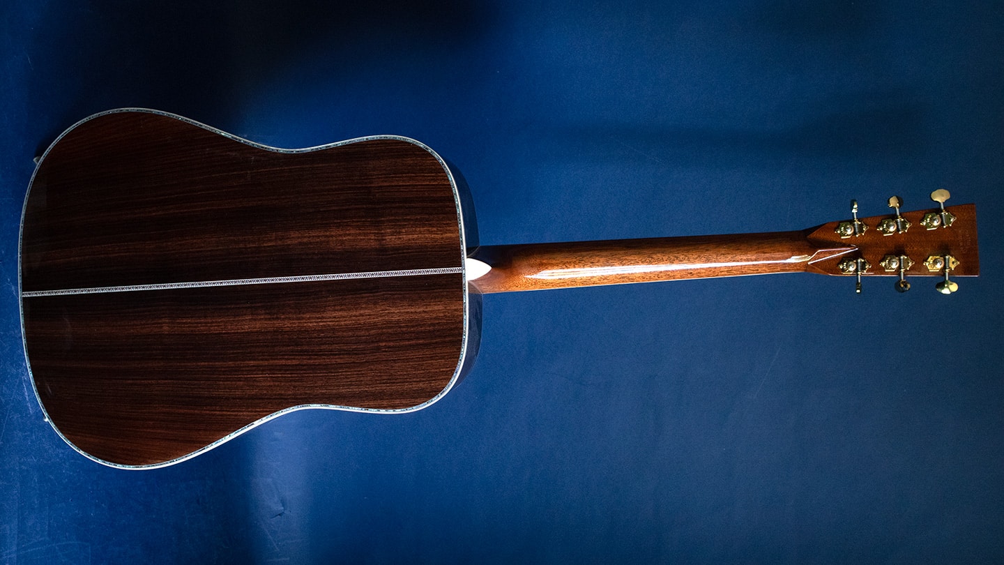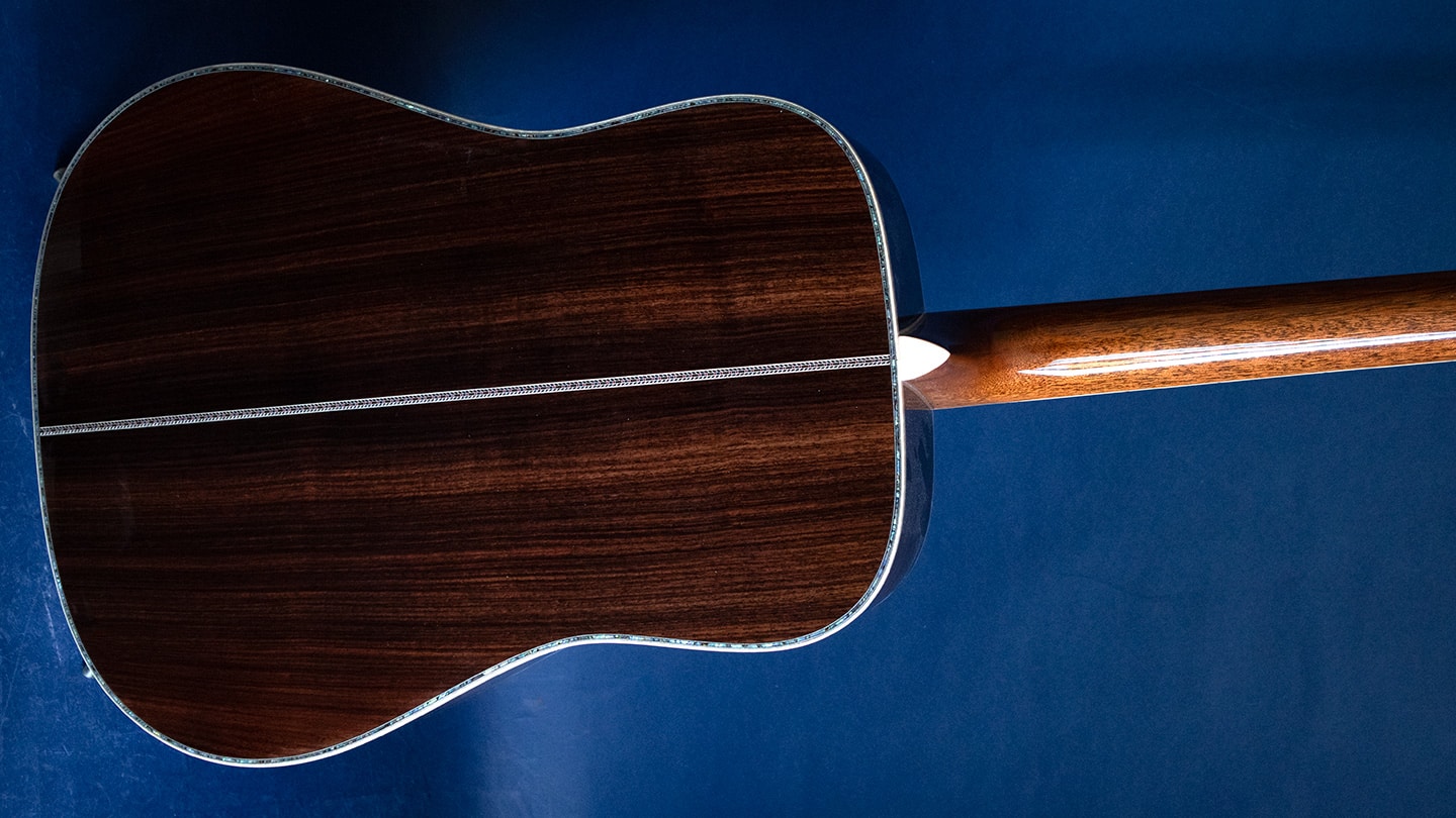 Martin’s most ornate dreadnought, made even better with Modern Deluxe features. Natural finish with a torrefied Sitka spruce top (VTS) for vintage warmth and projection with solid East Indian rosewood back and sides. Forward-shifted Adirondack spruce bracing (also VTS) adds power and responsiveness.