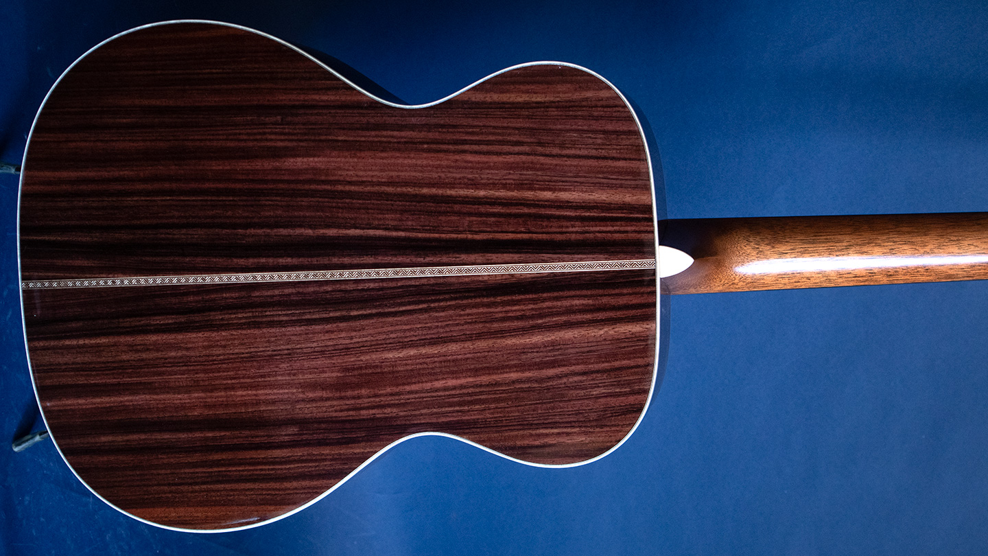 Natural, innovative model incorporating the best tried and true vintage and modern features. Has a Sitka Spruce top with VTS (torrefied) for an aged vintage tone, Bold Herringbone top trim (for vintage deluxe style), East Indian Rosewood back and sides, hide glue construction, dovetail neck joint, ebony fingerboard with abalone diamond and square inlays, 1 3/4” nut width, Adirondack Spruce forward shifted scalloped top bracing with VTS, new vintage deluxe neck profile with high performance taper, very cool European flamed maple binding, gold frets, gold open back tuners with butterbean buttons, carbon fiber bridge plate, Liquidmetal bridge pins with red dots. A great new guitar! Comes with a new hard case.