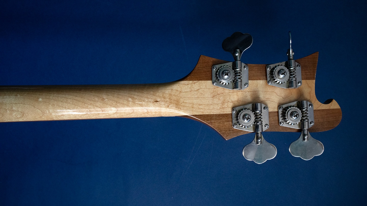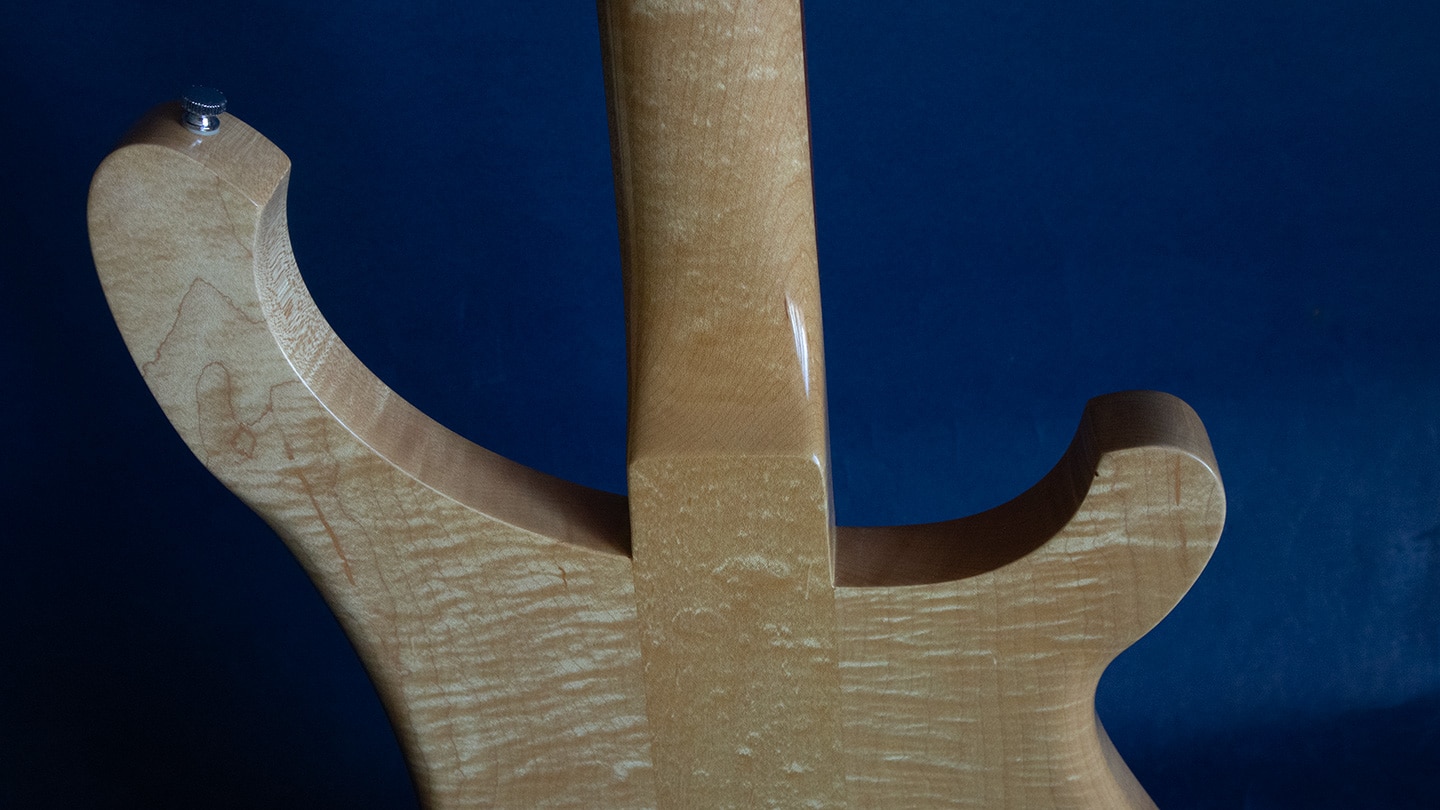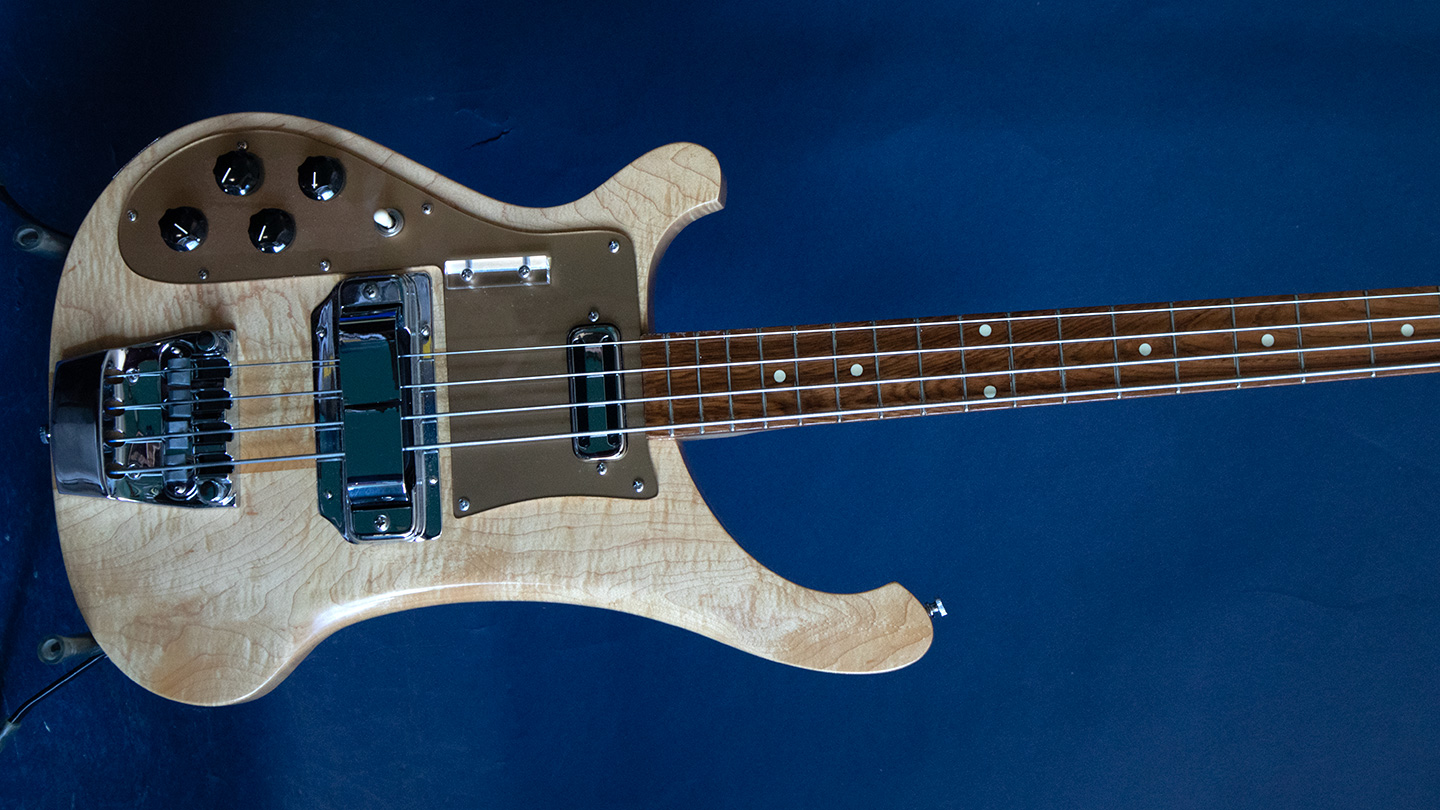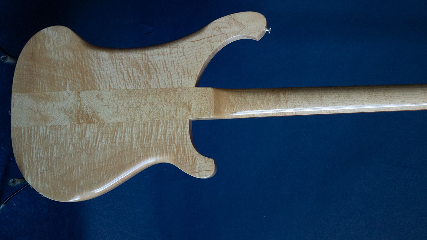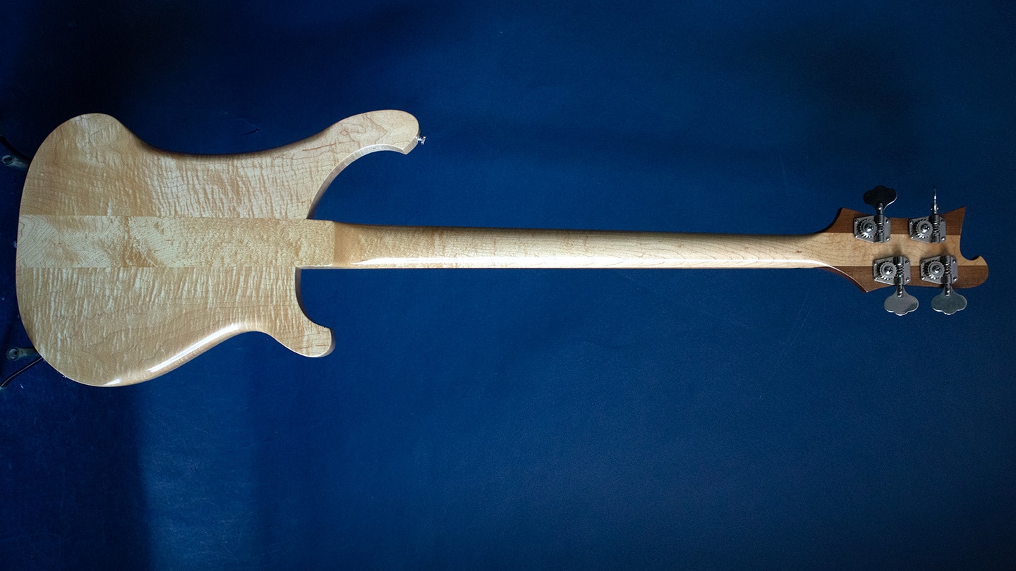 Natural, we are told this was made by a builder in Canada. Whoever made this had great skill. The S in 4001 is for special order having no binding and dot inlays. This has the neck through construction made of high grade flamed maple with Walnut headstock wings. It’s a very comfortable neck with the rounded bottom edge and perfect cresting wave. The gold plastic parts would be earlier than ’64 but they look great. Paul McCartney used his 4001S on Rubber Soul and Seargant Peppers. He stripped the finish off of his ’64 in ’68. This has all Rickenbacker parts and sounds great. Note the aged lacquer finish has slightly yellowed and looks stunning.